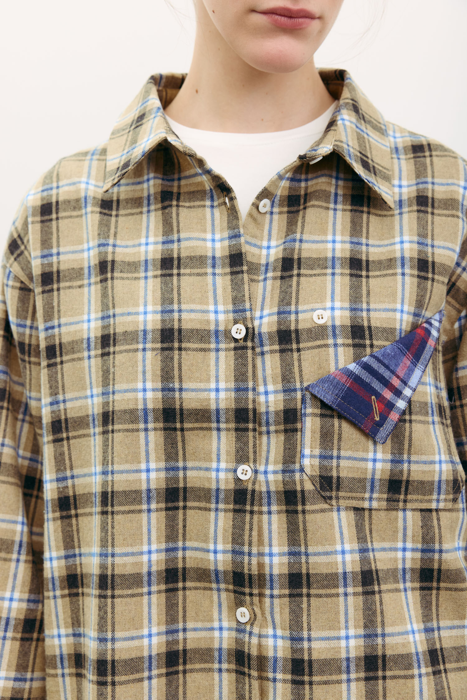 1 690 грнСорочка бежевого відтінку з клітинним візерунком. Вільний силует доповнено декоративною кишенею. Пошита з цупкої сорочкової тканини, яка надійно зберігає форму. Підходить для затишних осінніх образів і впишеться в будь-який гардероб.