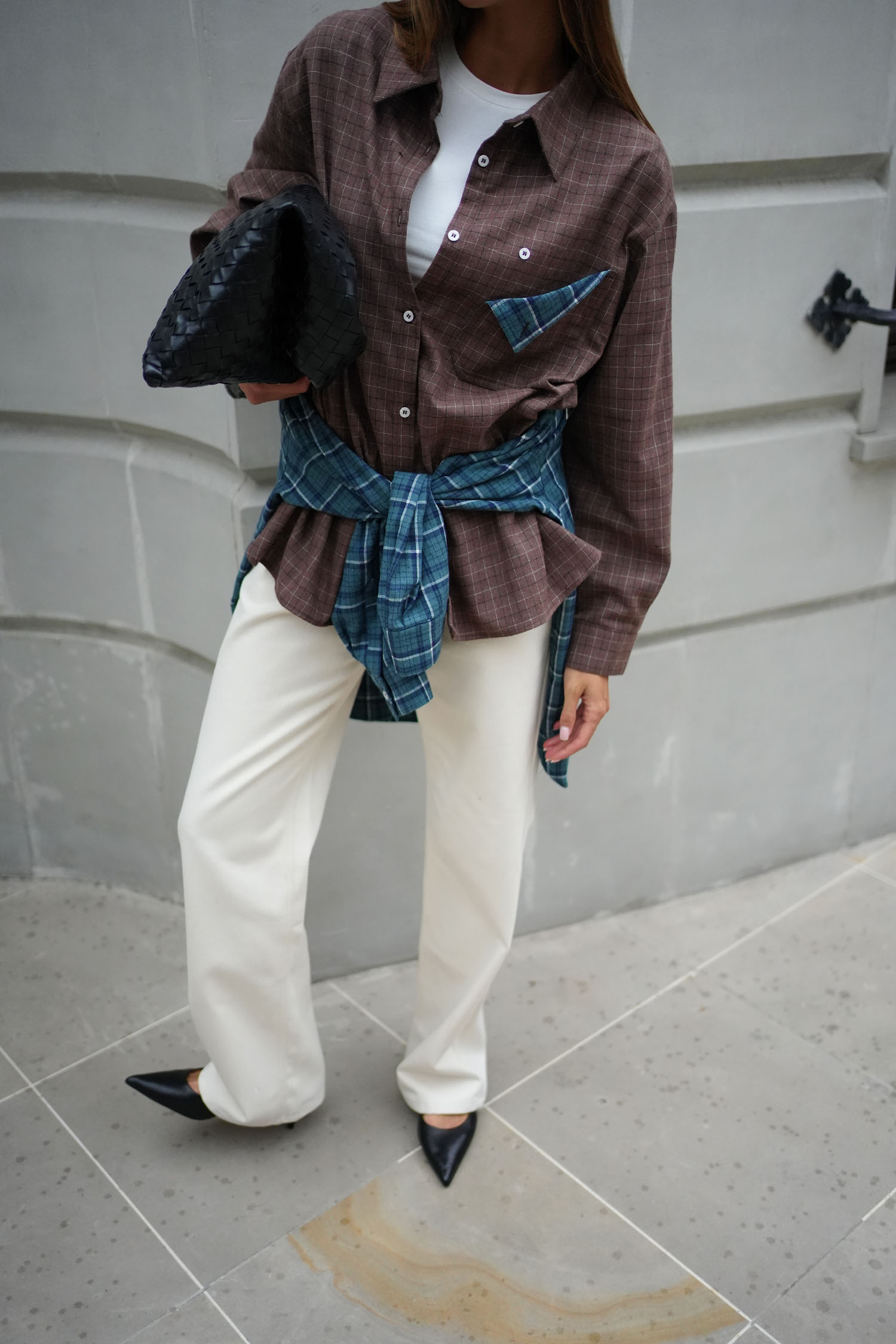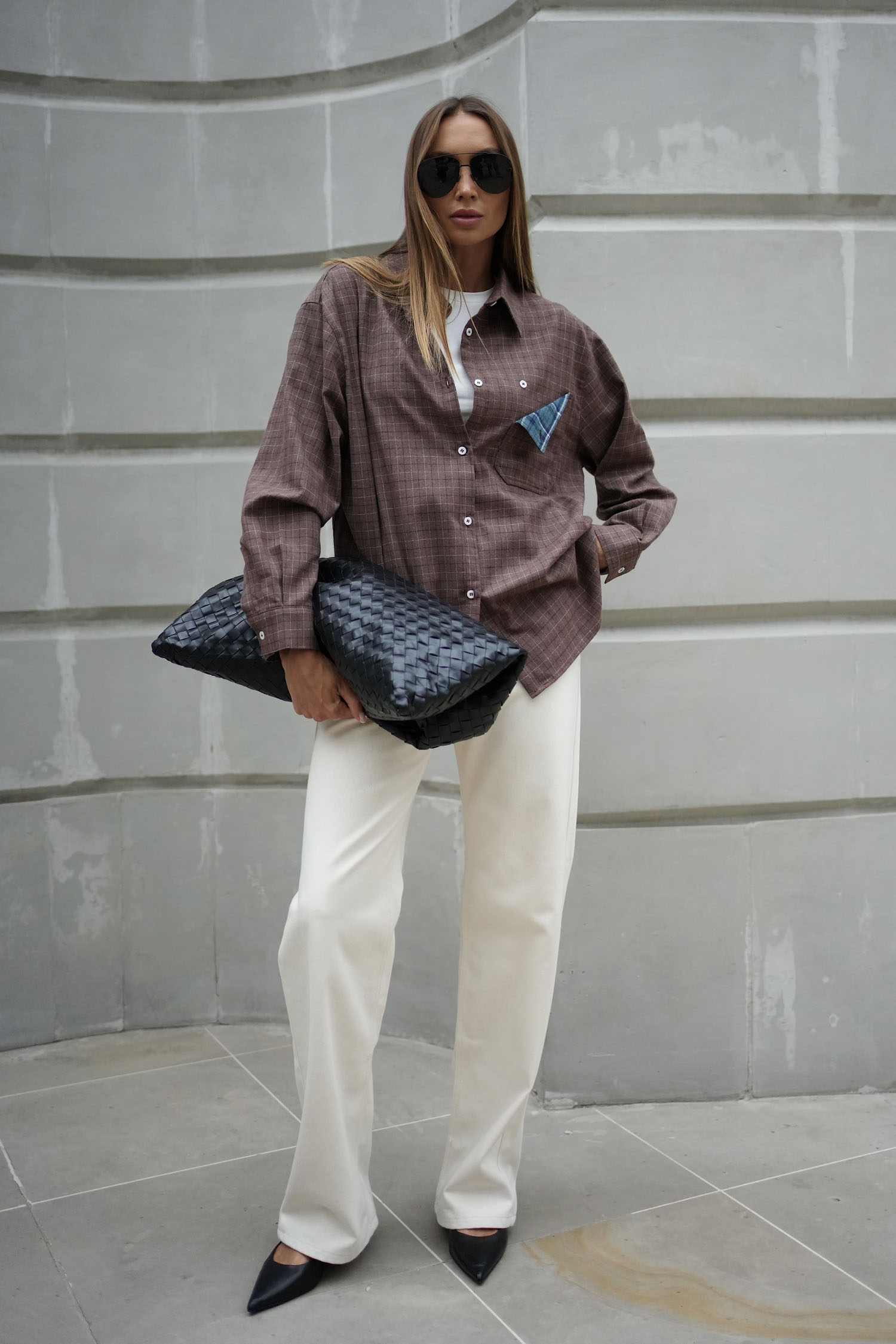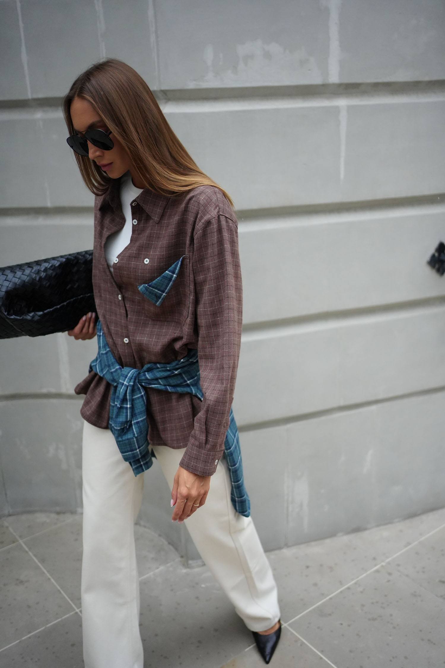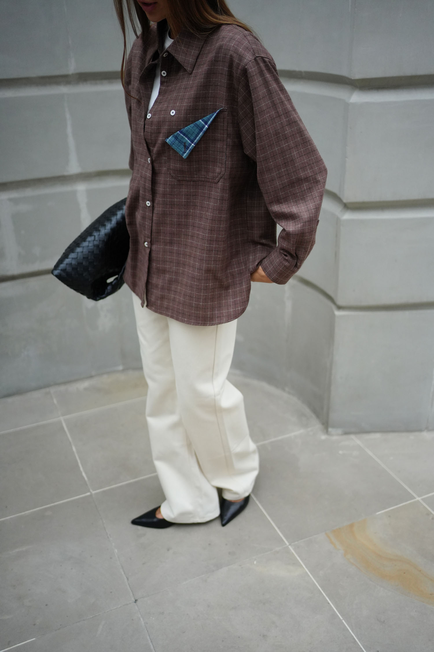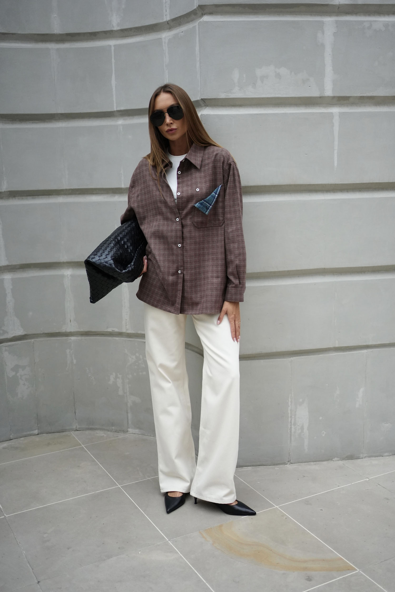 Сорочка в клітинку з декоративною кишенею шоколадна