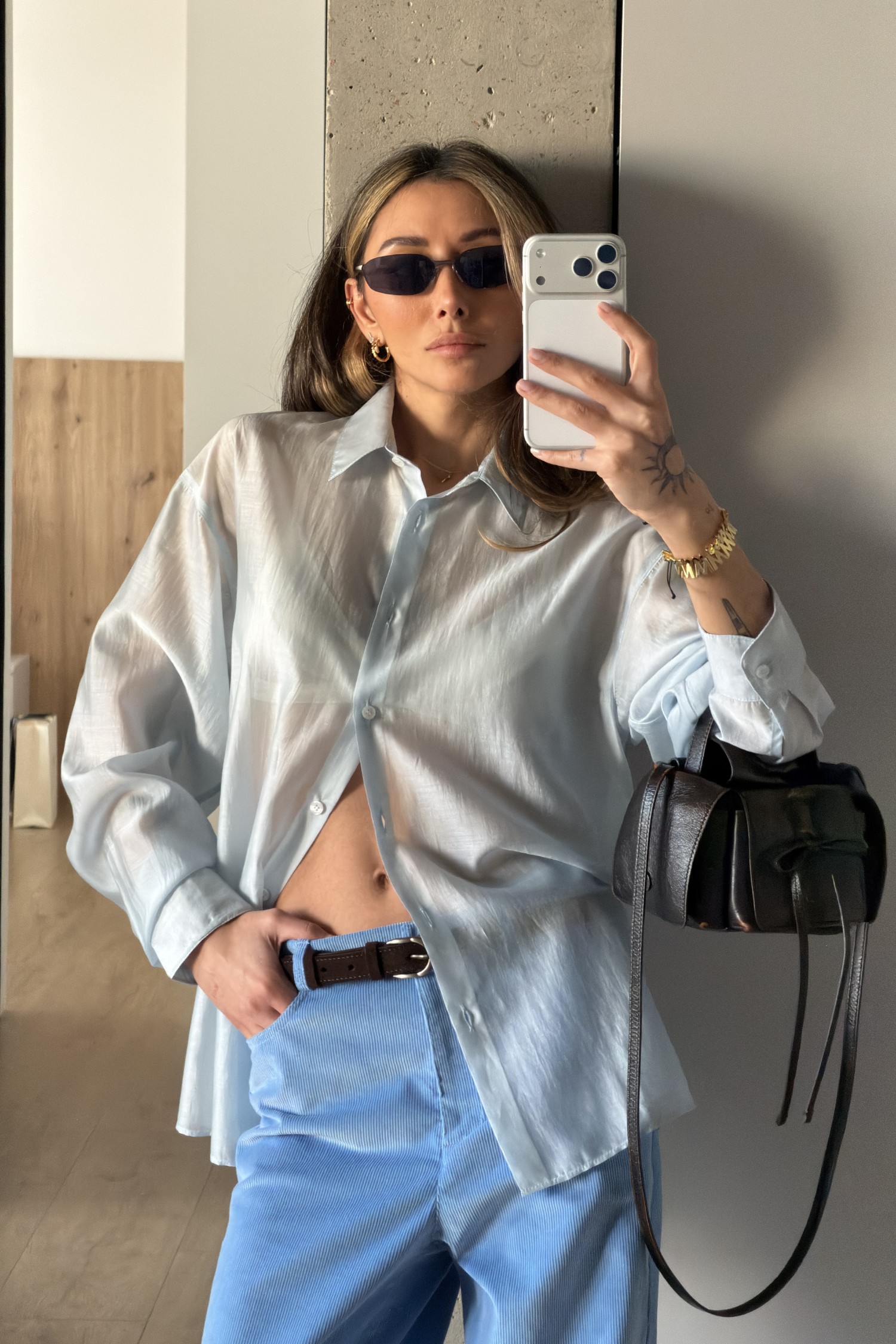 Сорочка вільного крою напівпрозора з тенселу Iced Blue