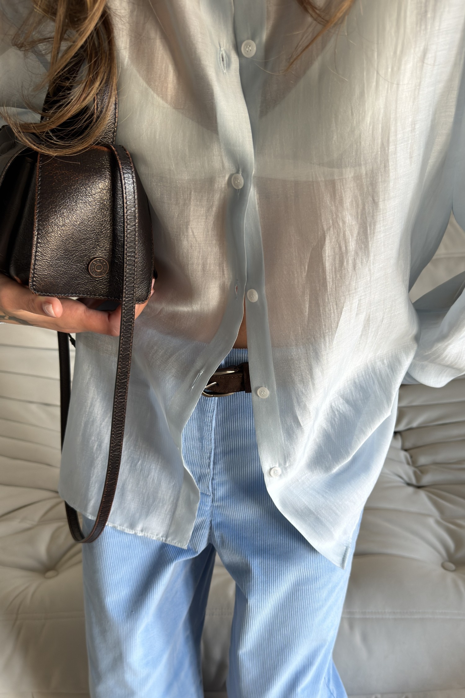 Від 3000 грн доступна оплата частинами monobank Детальніше Жіноча напівпрозора сорочка кольору Iced Blue.