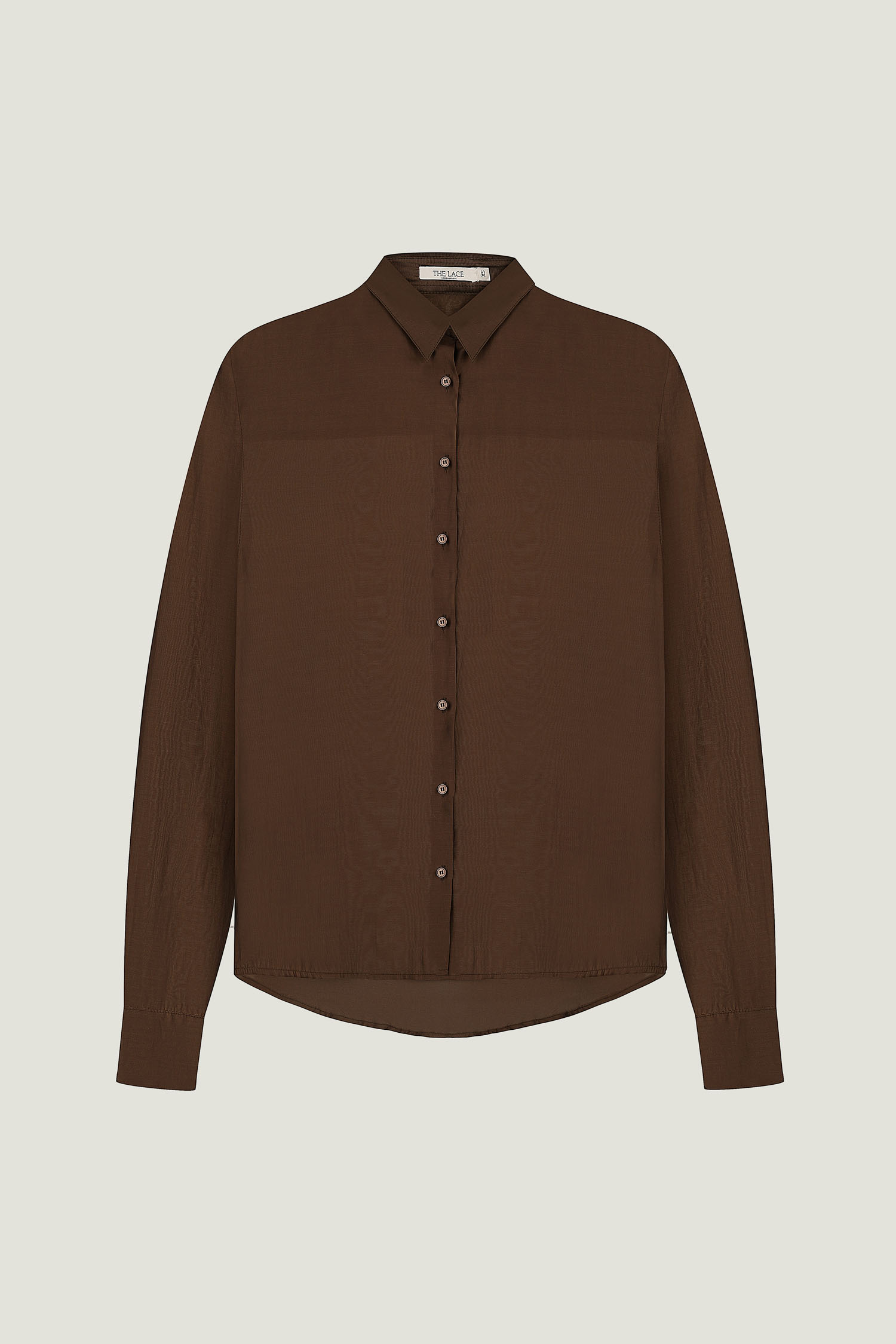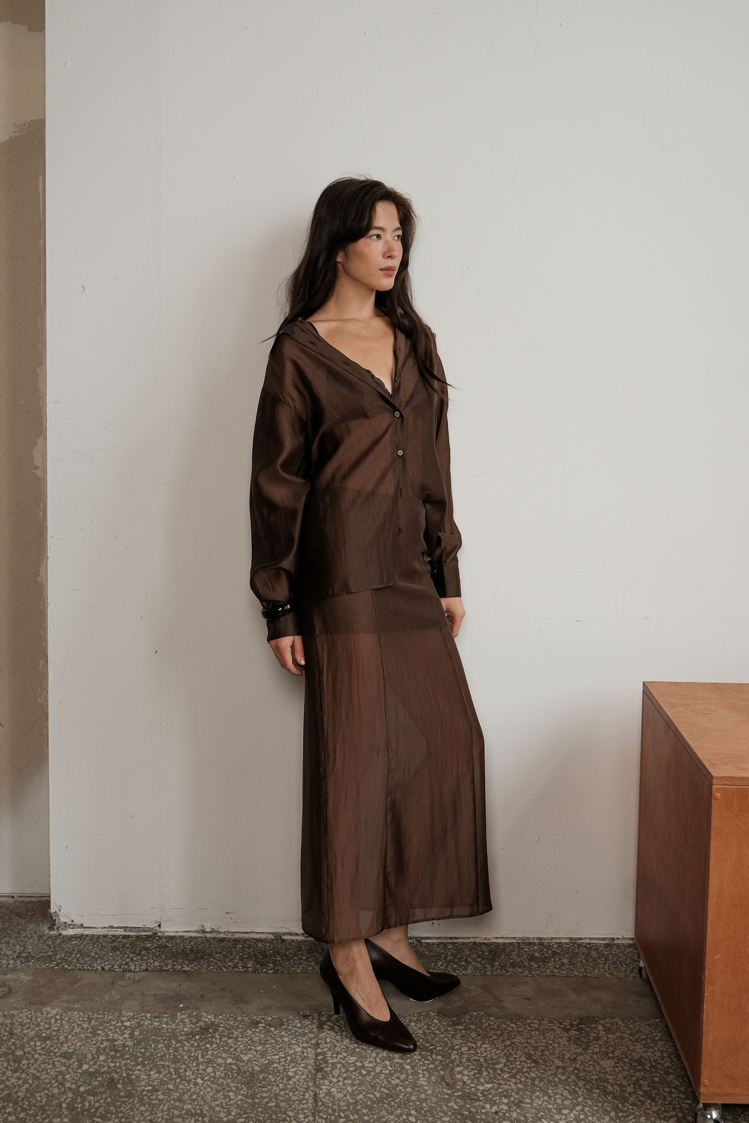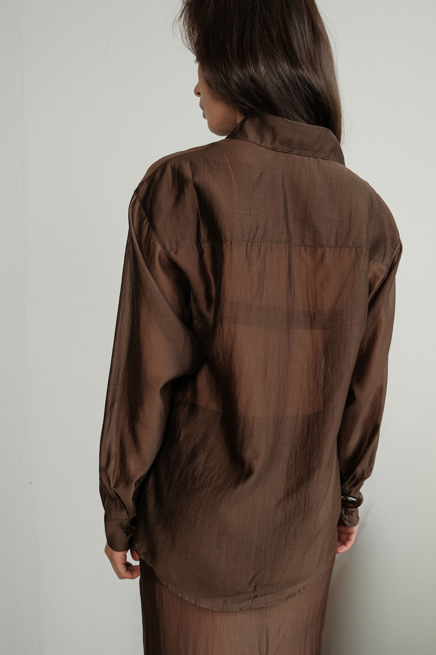 Сорочка вільного крою напівпрозора з тенселу шоколадна