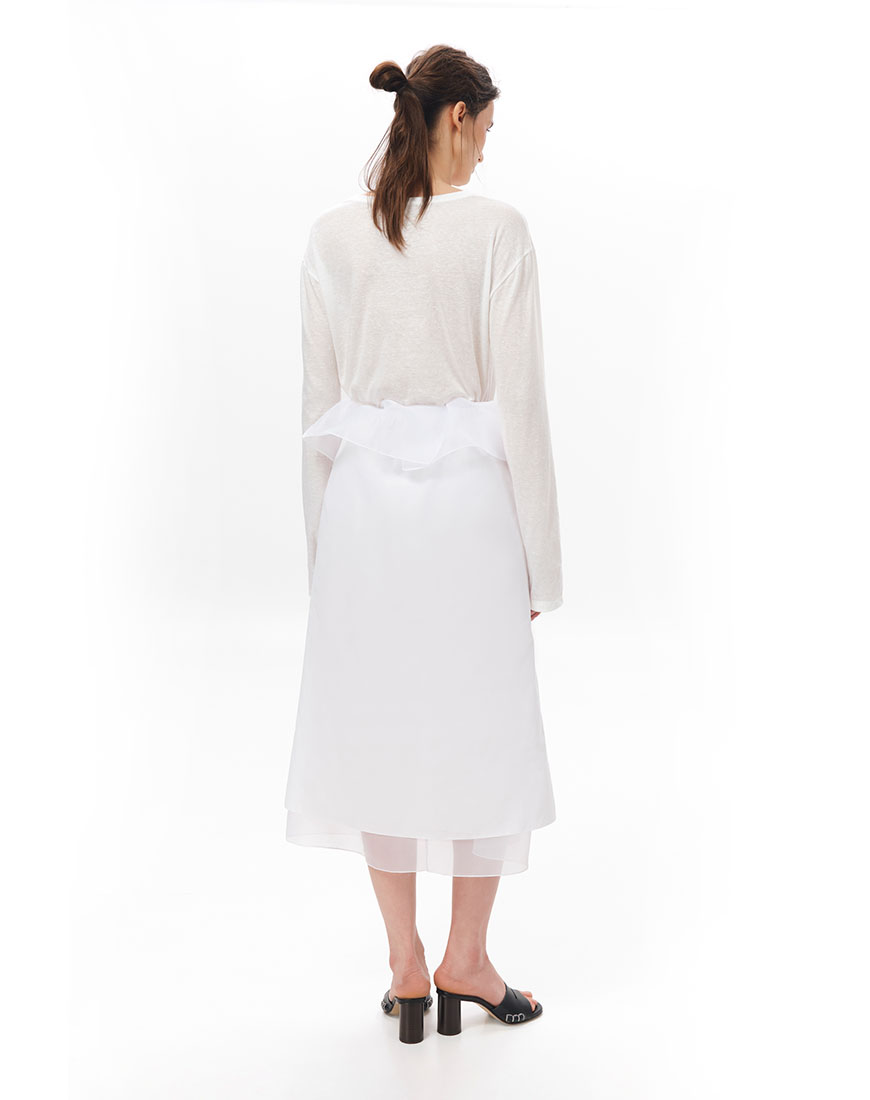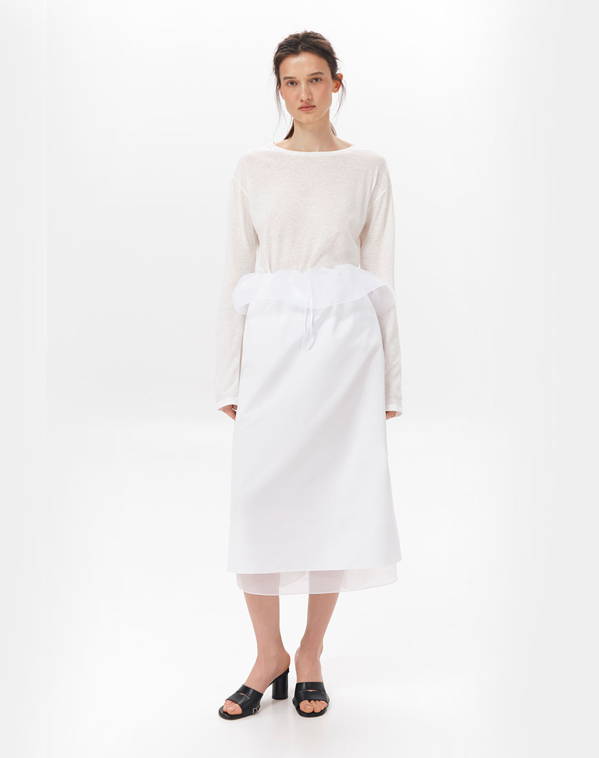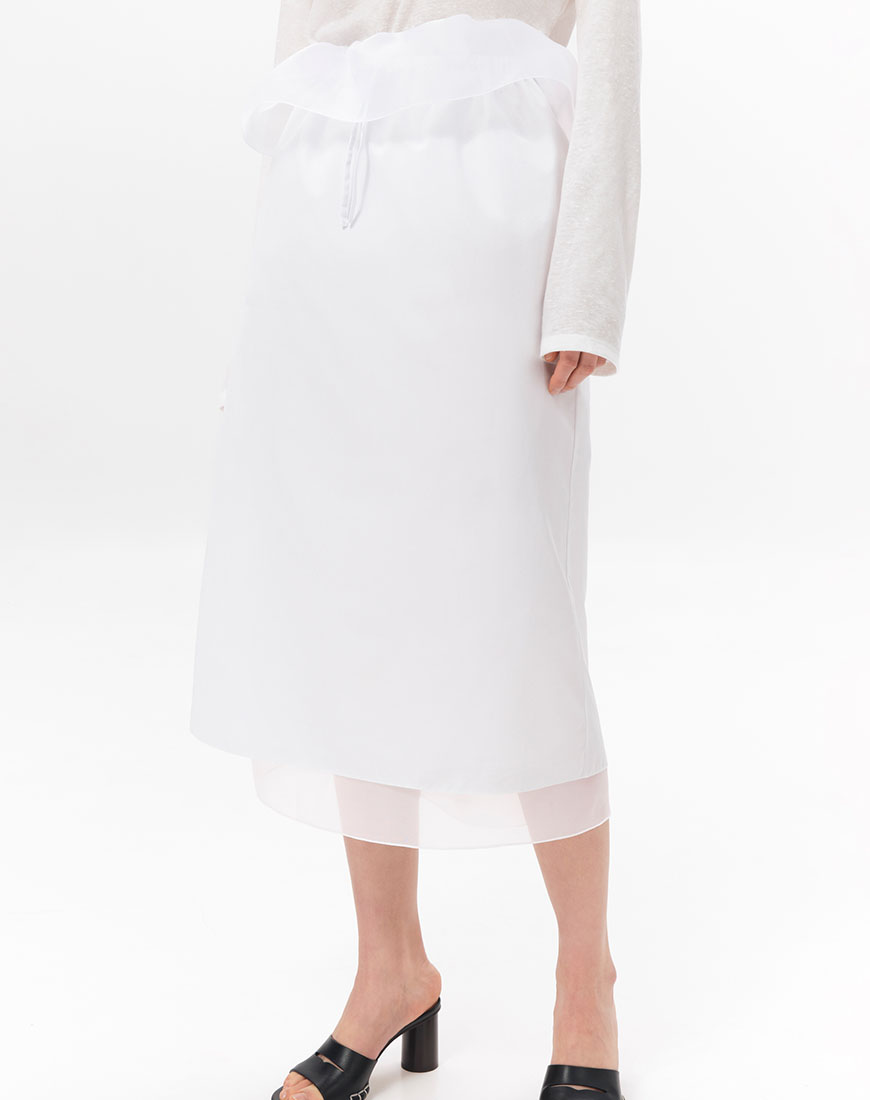 Доставка впродовж 5-7 робочих днівСпідниця з бавовни на еластичному поясі з гумкою, декорованому баскою. Прямий силует. Комфортна посадка на талії. Легка тканина добре пропускає повітря та приємна до тіла. Легко поєднується з вкороченими топами, базовими футболками або контрастними утилітарними речами.