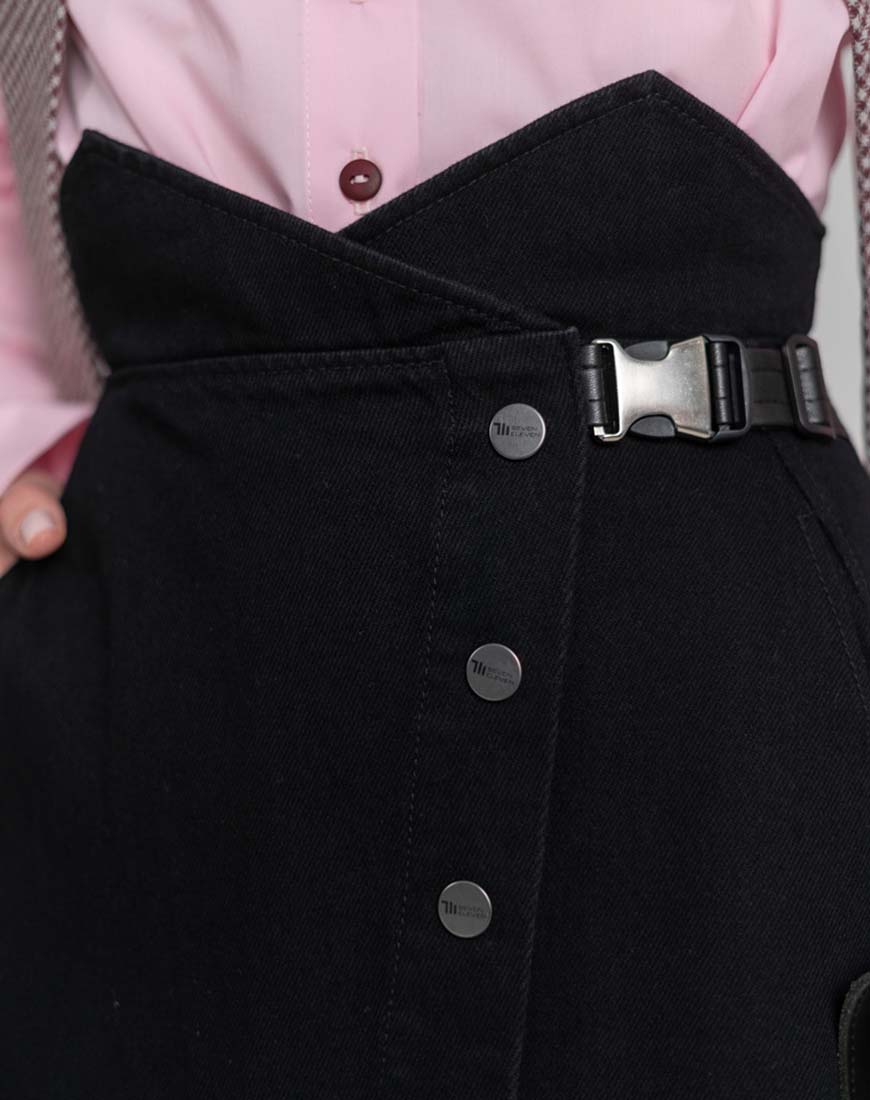 Спідниця на запах денім/екошкіра чорного кольору