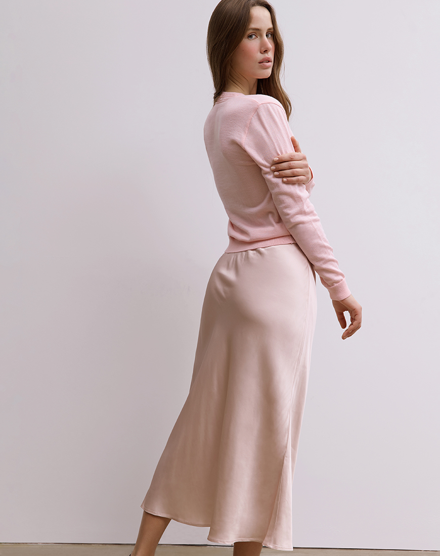 Доставка впродовж 2-5 робочих днівСпідниця скроєна по косій з італійської віскози. Розслаблений силует. Довжина — міді.