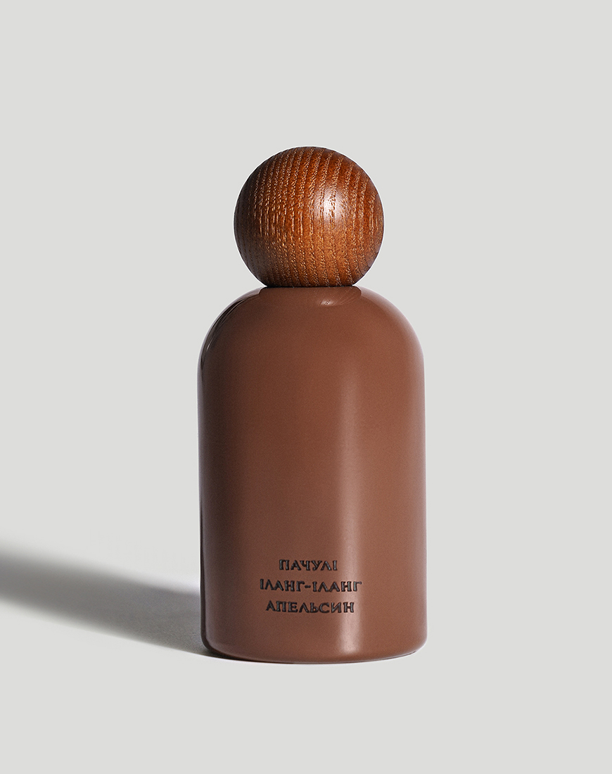 Фільтрована вода, етиловий спирт 96% (35% у вмісті флакону), фракційна кокосова олія, ефірна олія пачулі, ефірна олія іланг-ілангу, ефірна олія солодкого апельсину.