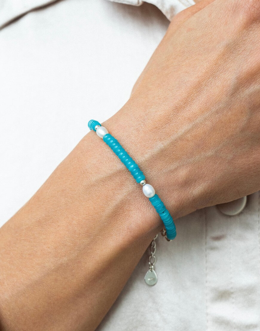 Доставка впродовж 2-5 робочих днівБраслет Deep Sea від Silver Stories ідеальний аксесуар на літо, чи то на пляж, чи то на шопінг з подругами. Завжди додасть тобі літнього настрою та підкреслить твій аутфіт. Порадуй себе та своїх подруг цим стильним браслетом із натурального амазоніту, прісноводних перлин та срібної фурнітури 925 проби. Довжина регулюється, тож підходить усім.