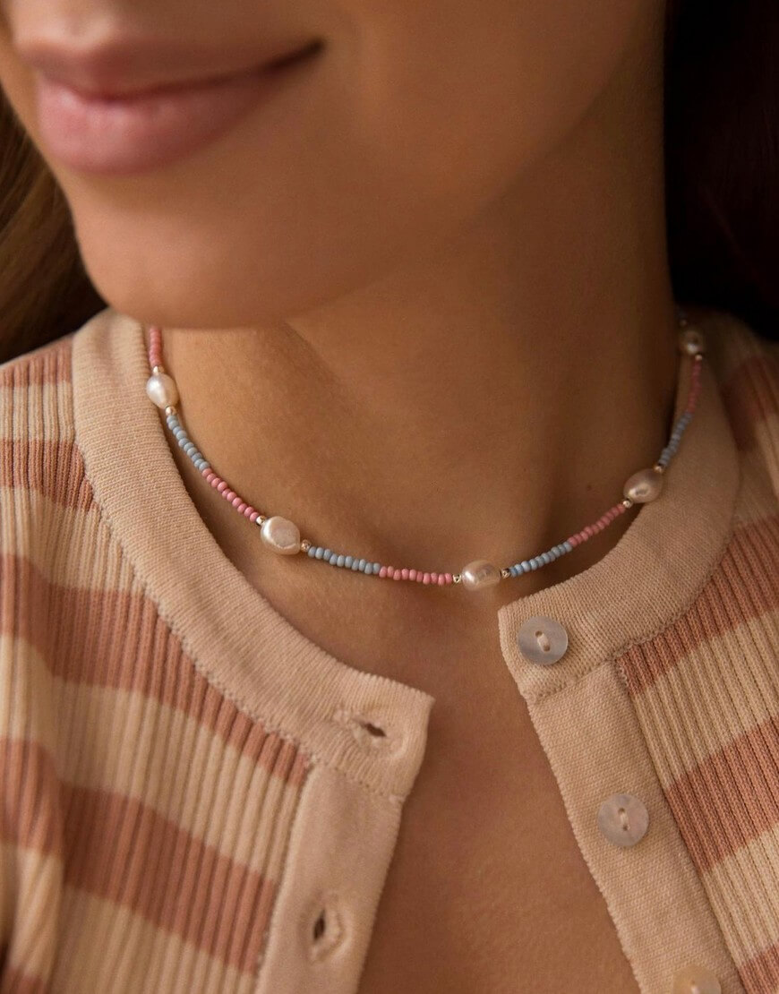 Доставка впродовж 2-5 робочих днівНіколи не пізно придбати чокер пастельних кольорів “Caramel” від Silver Stories. Цей чокер буде тримати тебе у гарному настрої будь-коли. Виготовлений з прісноводних перлин, фурнітури зі срібла 925 та з бісеру двох кольорів. Наші кольє регулюються у довжині на 5 см.