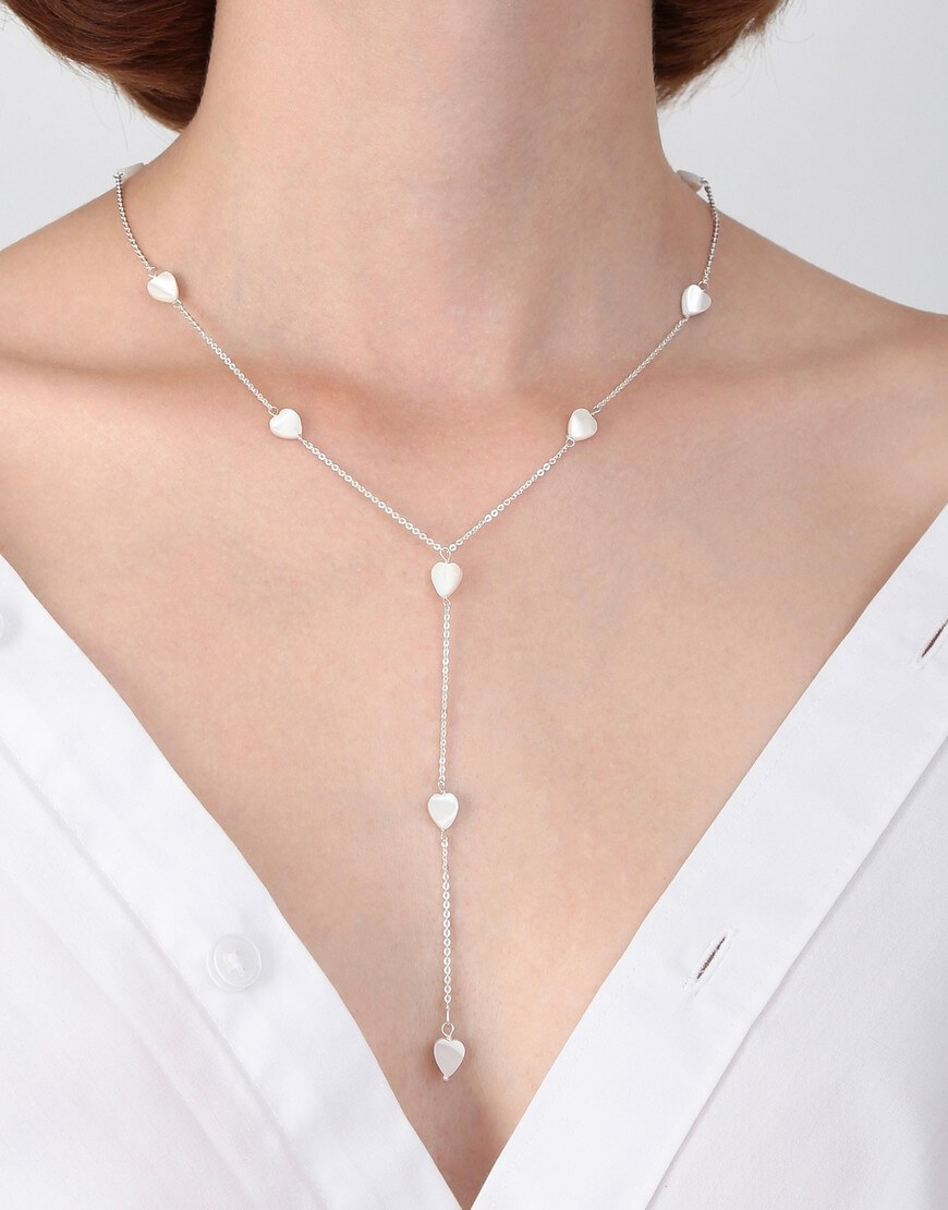 Доставка впродовж 2-5 робочих днівУсе, що тобі потрібно, це любов та срібний ларіат Sweetheart від Silver Stories. Виготовлено з витонченого срібного ланцюжка 925 проби та підвісок з натурального перламутру у формі сердечок по всій довжині ланцюжка, які всіх зачарують! Наші кольє регулюються у довжині на 5 см.