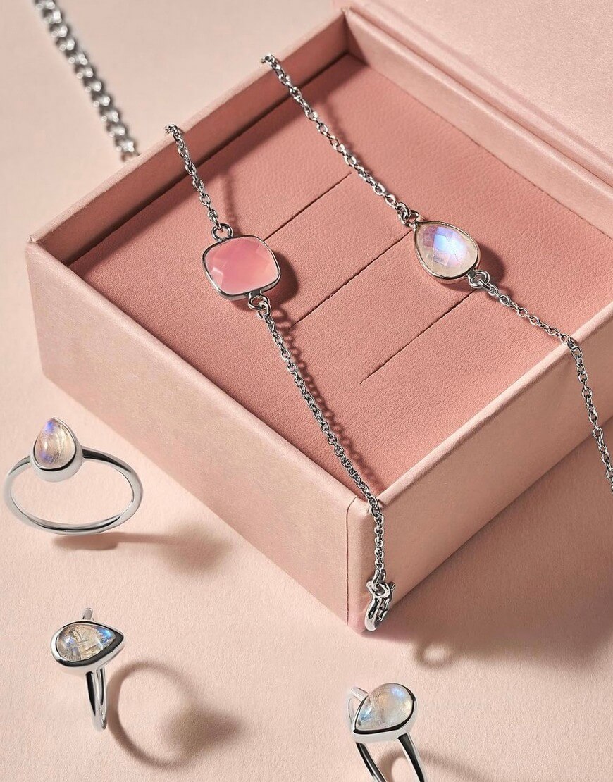 Склад: натуральний рожевий кварц; ланцюжок, фурнітура, застібка, ланцюжок-подовжувач зі срібла 925; покриття родієве (захист від чорніння)
