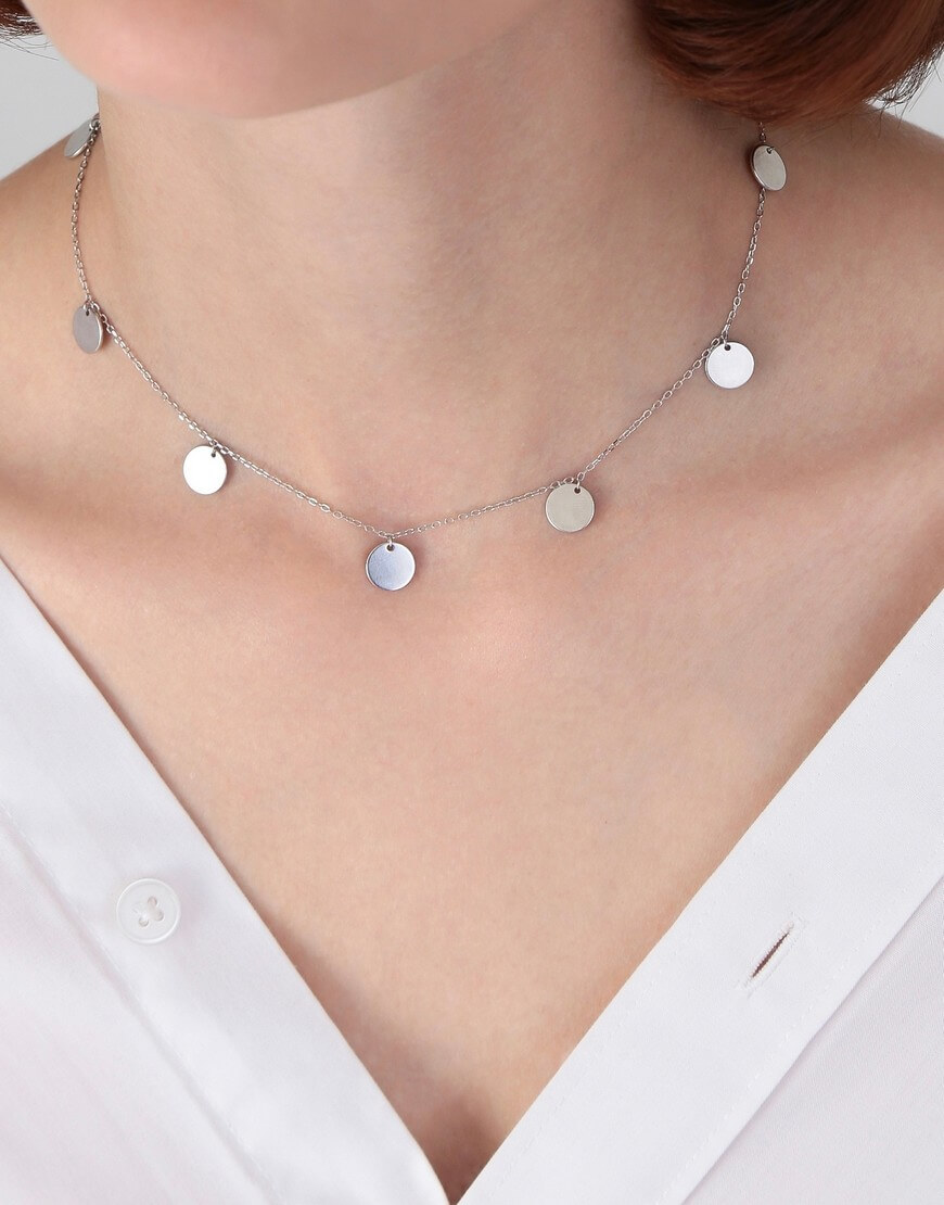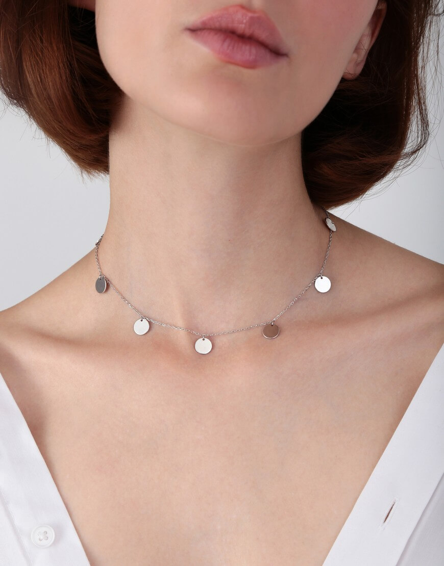 Доставка впродовж 2-5 робочих днівДодай блиску та грайливості своєму образу разом зі срібним кольє Coins від Silver Stories. Срібний ланцюжок чокера прикрашений срібними підвісками-монетами по всій довжині. Наші кольє регулюються у довжині на 5 см.