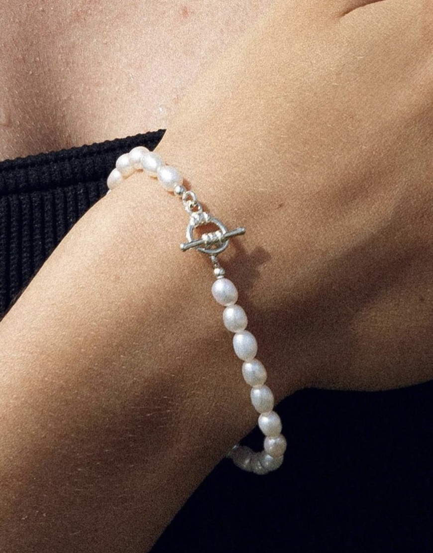 Доставка впродовж 2-5 робочих днівБраслет ручної роботи, з річний прісноводних перлин, та фурнітурою зі срібла 925, римський замок