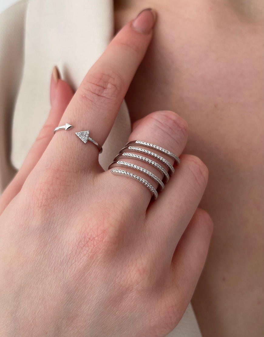 Доставка впродовж 2-5 робочих днівКаблучка спіраль зі срібла 925 проби та білого кубічного цирконію.