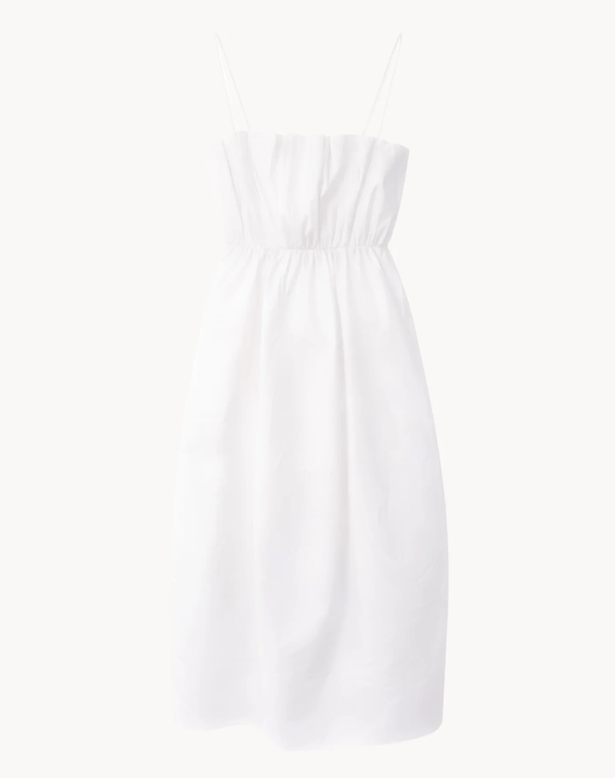 Сукня з бавовни, створена для легких і комфортних літніх образів. Делікатно зібраний ліф підкреслює лінію плечей і декольте, талія формує виразний силует з об’ємною спідницею довжини міді. Усередині сукні передбачений легкий внутрішній топ, який забезпечує надійну підтримку грудей і дозволяє носити сукню без білизни. Особливим акцентом моделі є знімний бант на спинці, деталь, що додає образу романтичності та дозволяє змінювати настрій сукні.