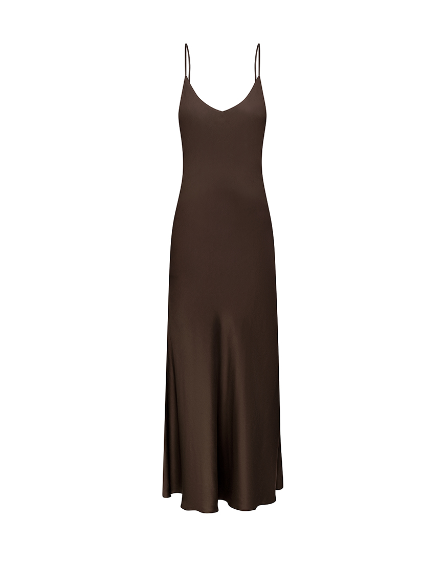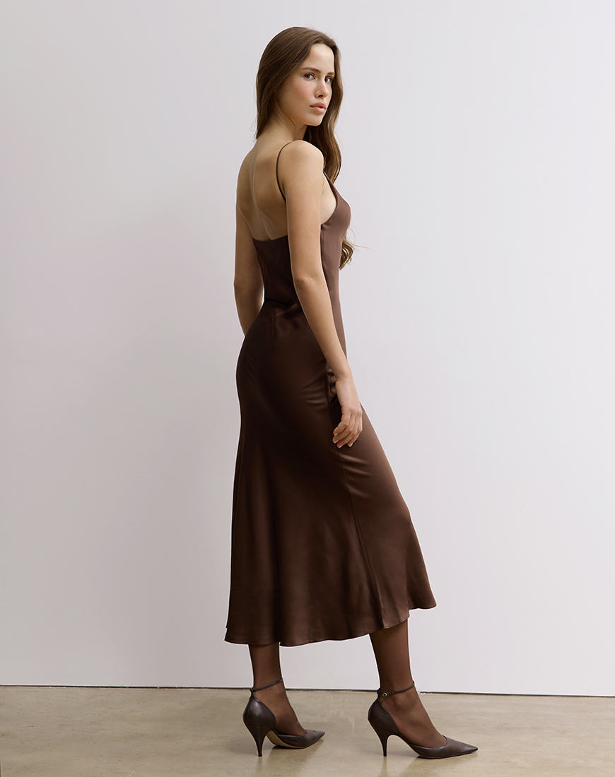 Доставка впродовж 2-5 робочих днівСукня (сліп-дрес) на тонких бретелях, скроєна по косій з італійської віскози. Довжина — максі. Ідеально поєднується з плащем Notte Chiara.