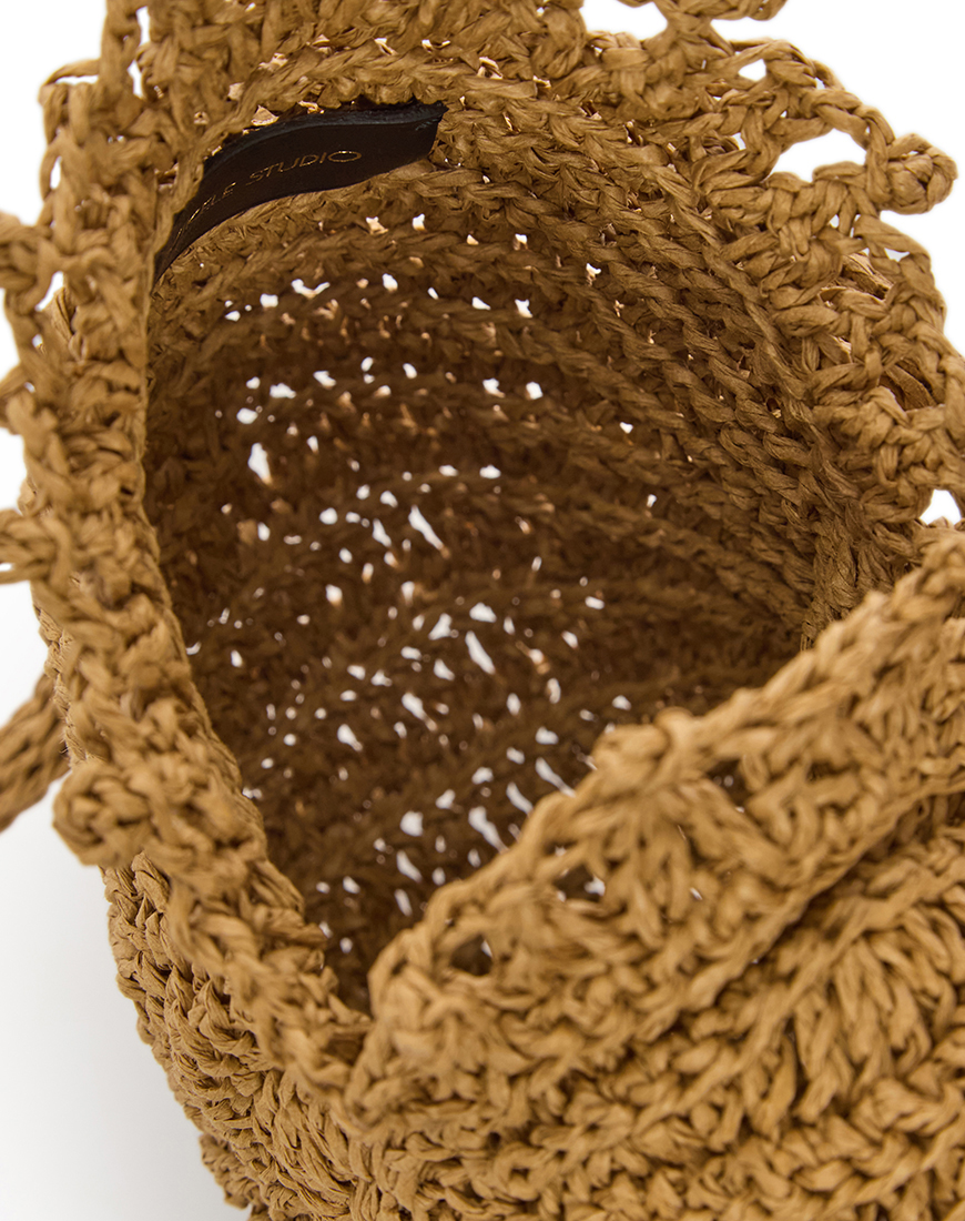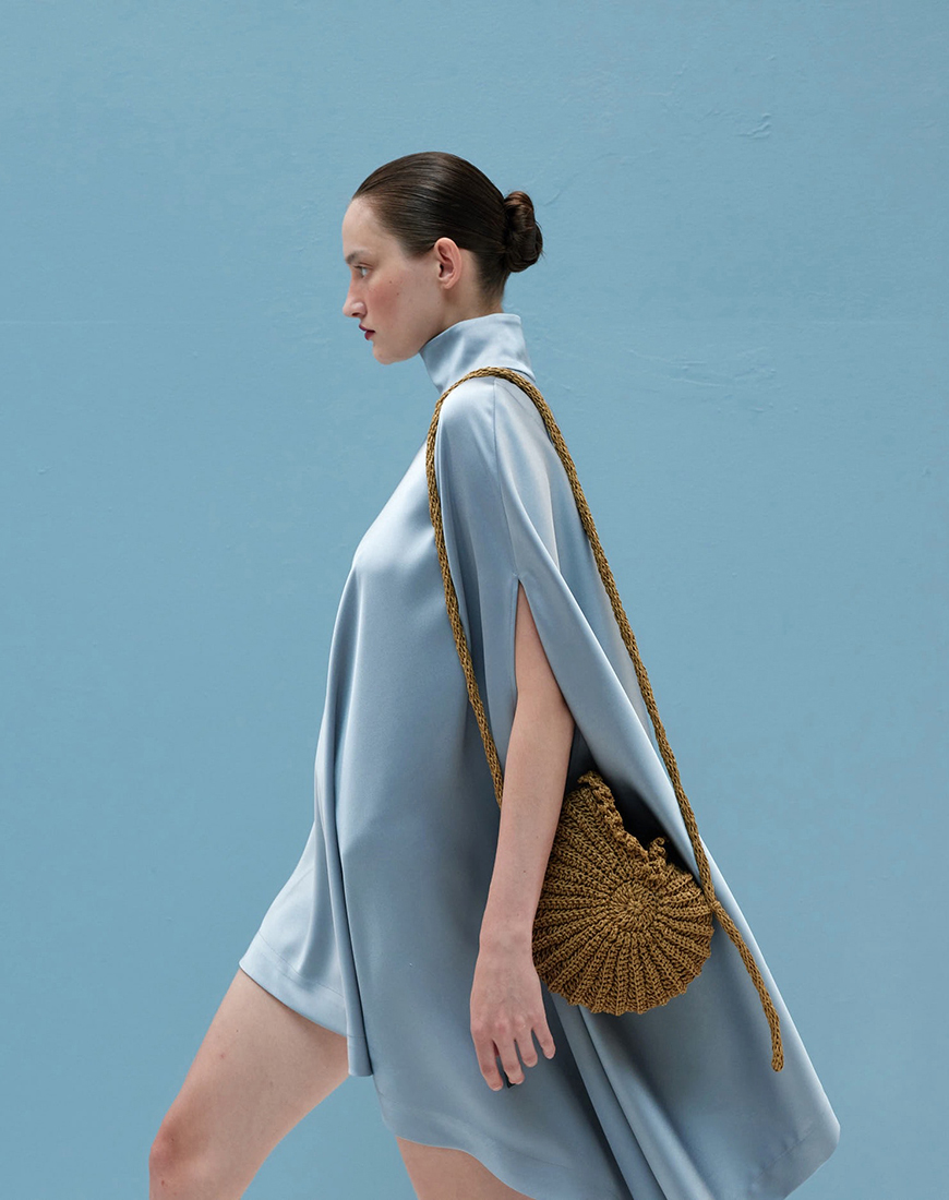 Сумка Ariele створена з натуральної рафії, повторює форму морської мушлі — скульптурний силует, народжений ритмами природи. Легка, але виразна, вона створена, щоб привертати погляди й підкреслювати особливі літні моменти.