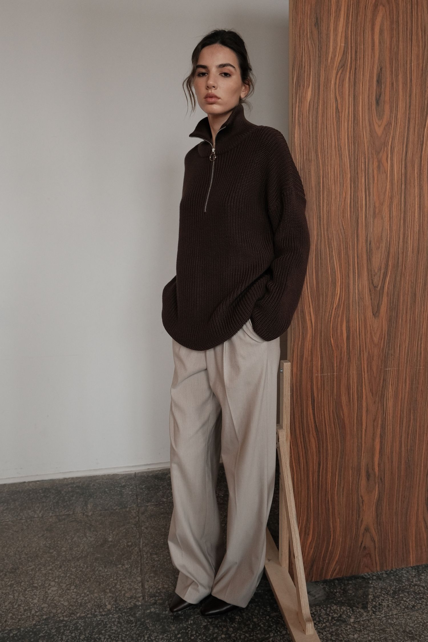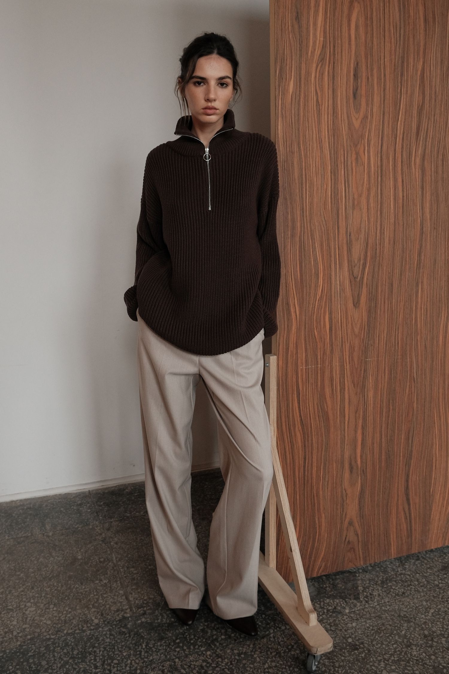 Светр із блискавкою шоколадний