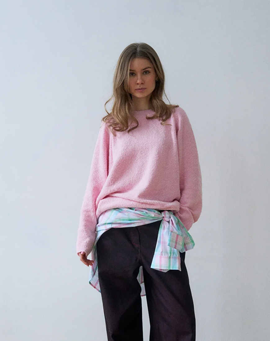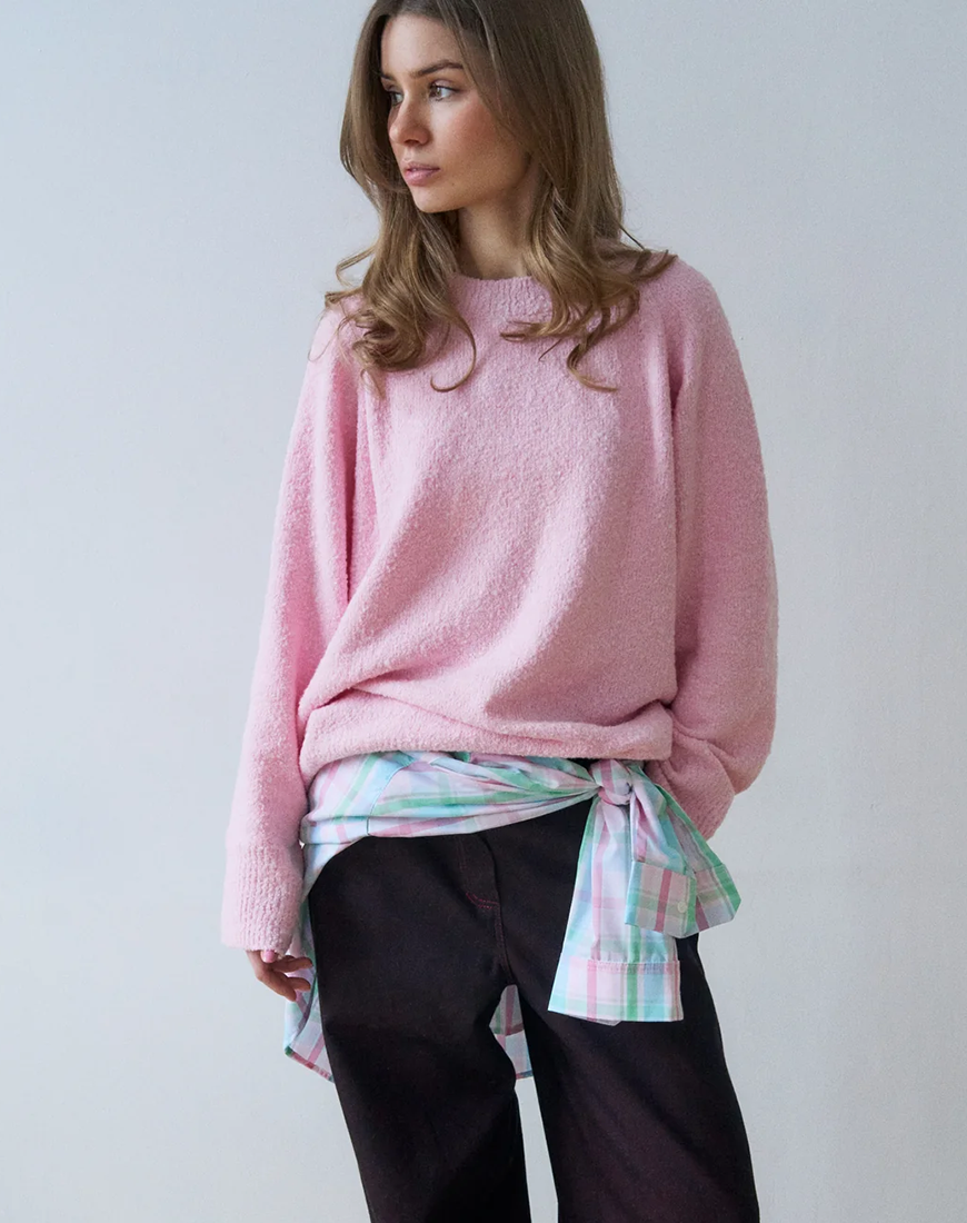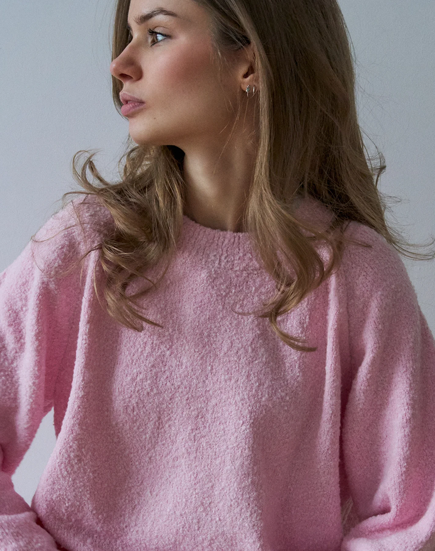 Доставка впродовж 2-5 робочих днівВ’язаний светр оверсайз-крою з круглим вирізом, довгими рукавами, окантовкою в рубчик