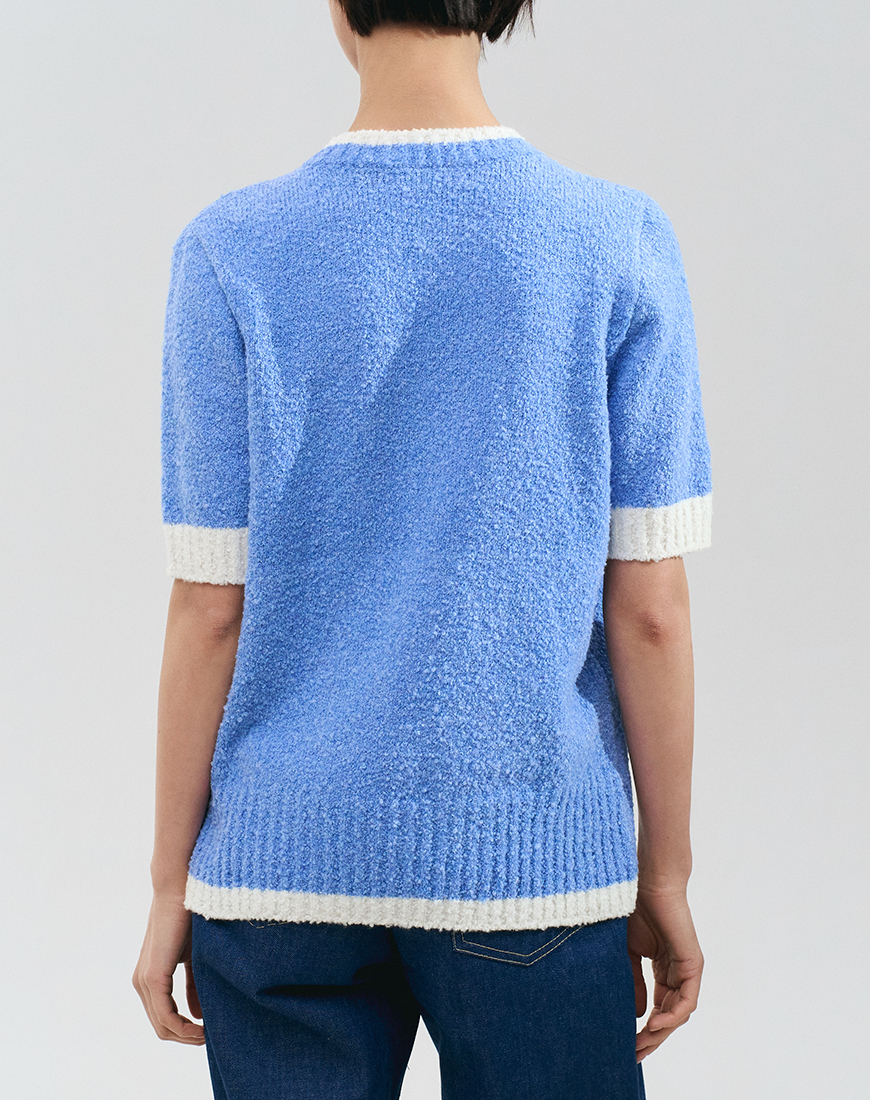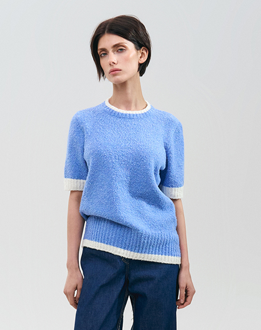 Светр із вовни і бавовни з короткими рукавами – блакитний