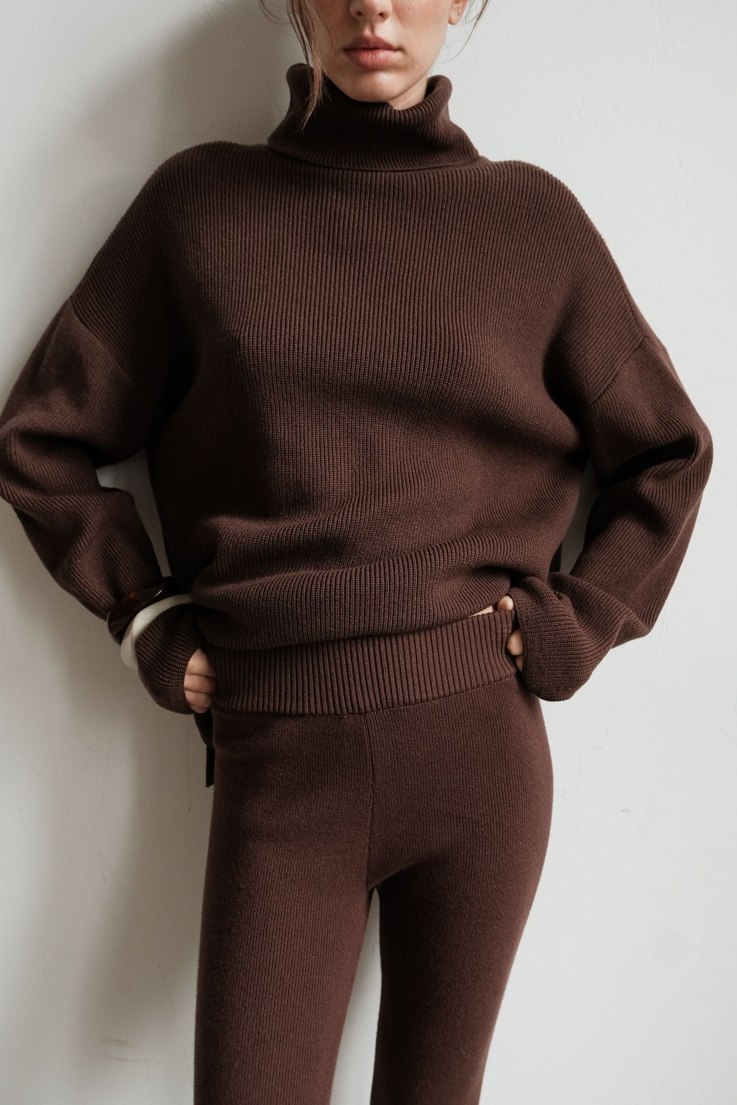 ДоставкаЖіночий трикотажний светр шоколадного кольору з прямим кроєм і високою горловиною. Матеріал – м’яка пряжа, приємна до тіла. Підходить для осінньо-зимового сезону. Легко комбінується з брюками, джинсами та легінсами і забезпечує зручну посадку.