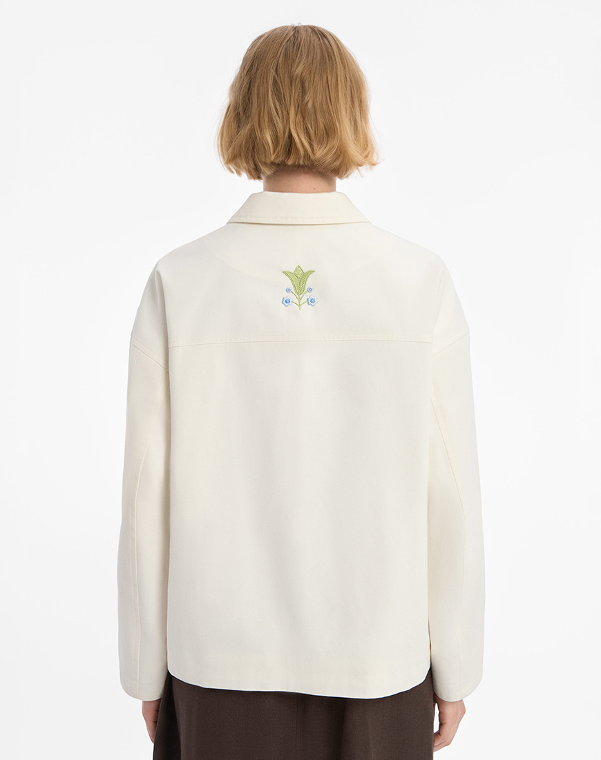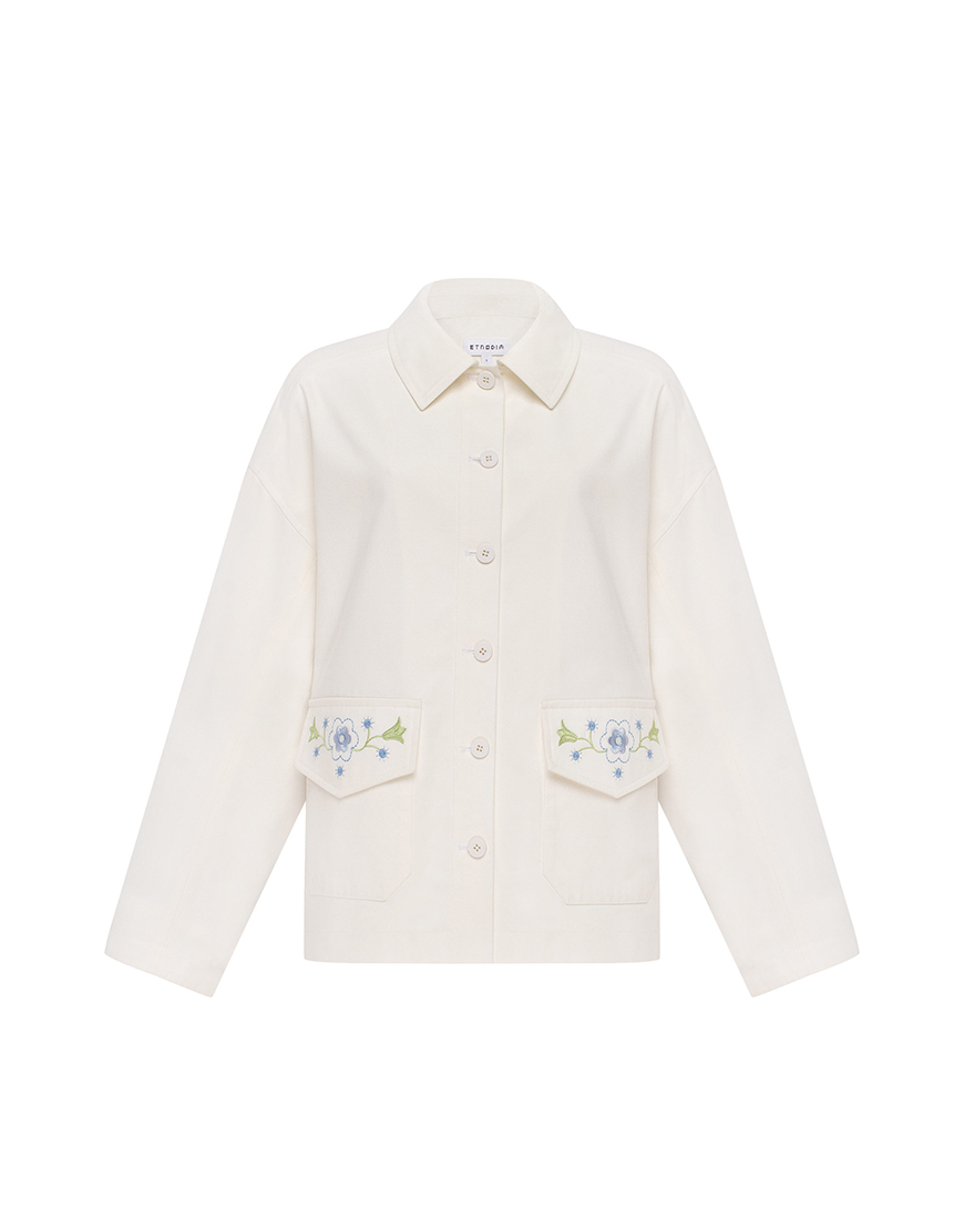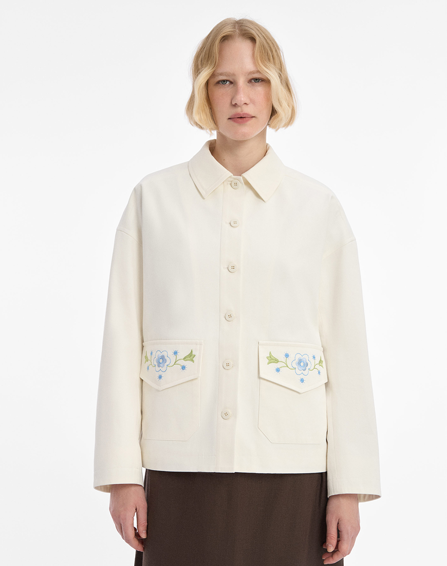 Легка куртка, виконана з котону молочного кольору.