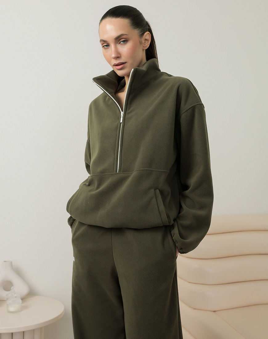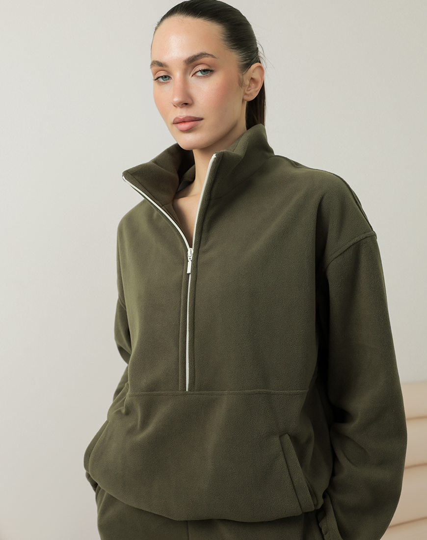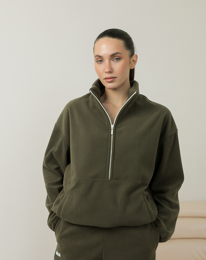 Світшот флісовий на півблискавці хакі