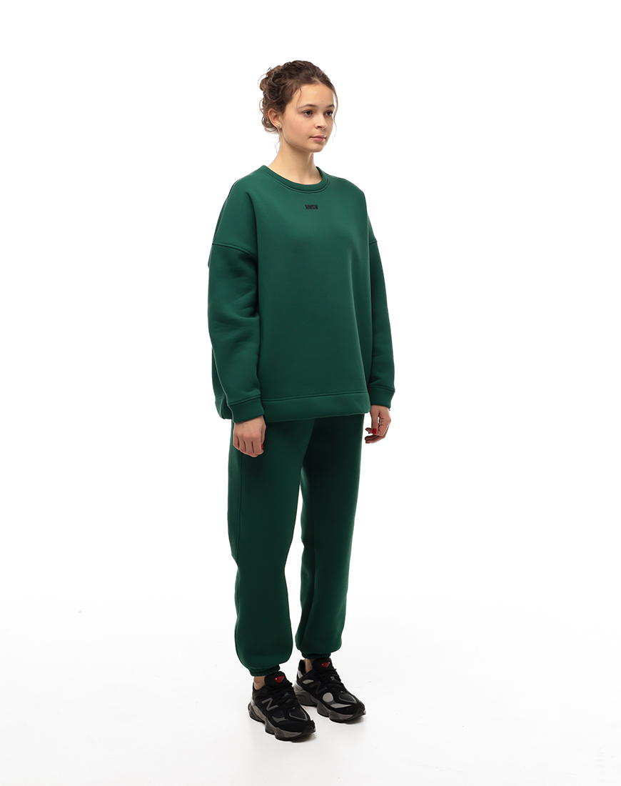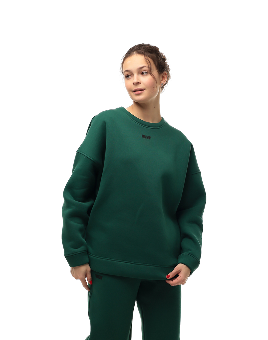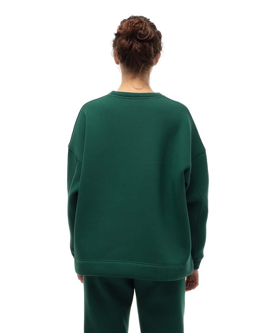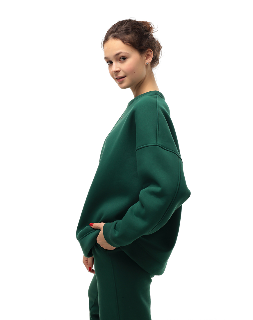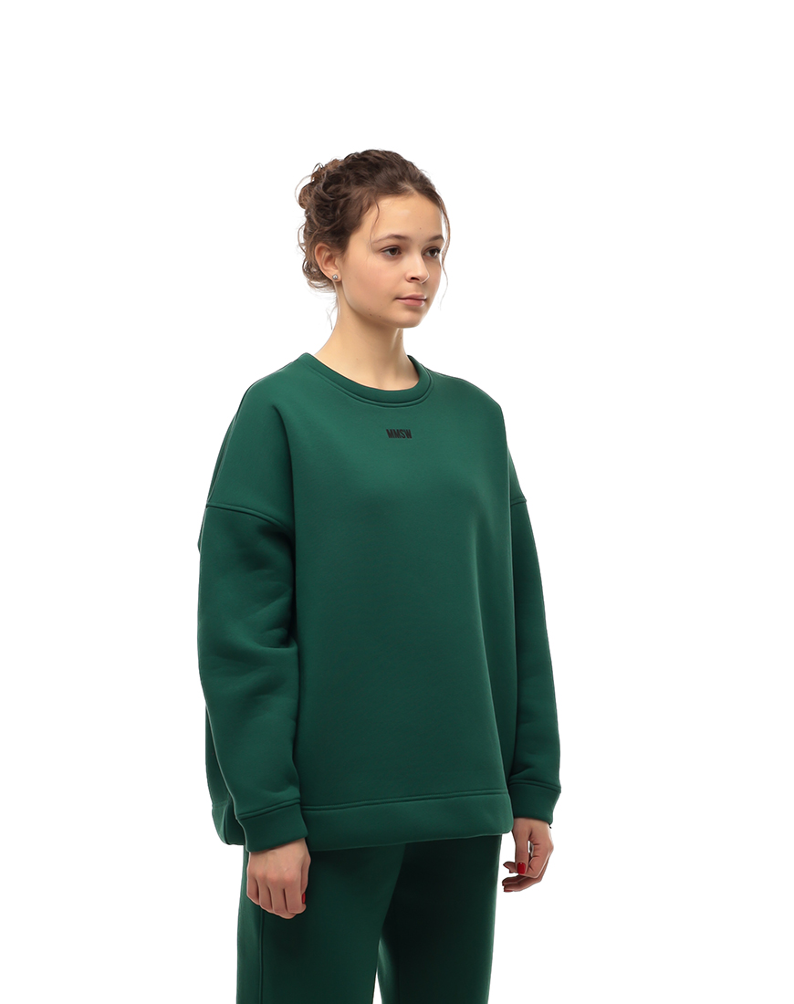 Доставка впродовж 2-5 робочих днівТемно-зелений світшот доповнює жіночий спортивний костюм, створюючи стриманий образ. Прямий крій зручно поєднується зі спортивними штанами.