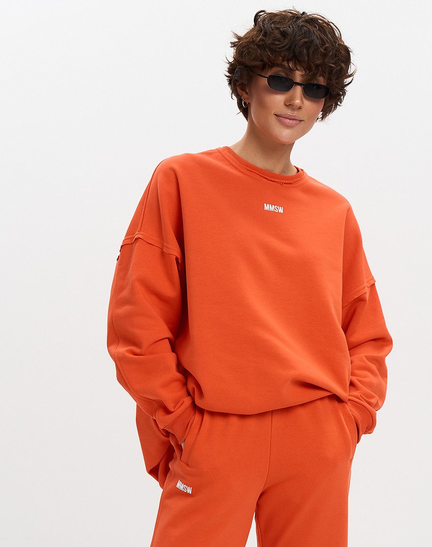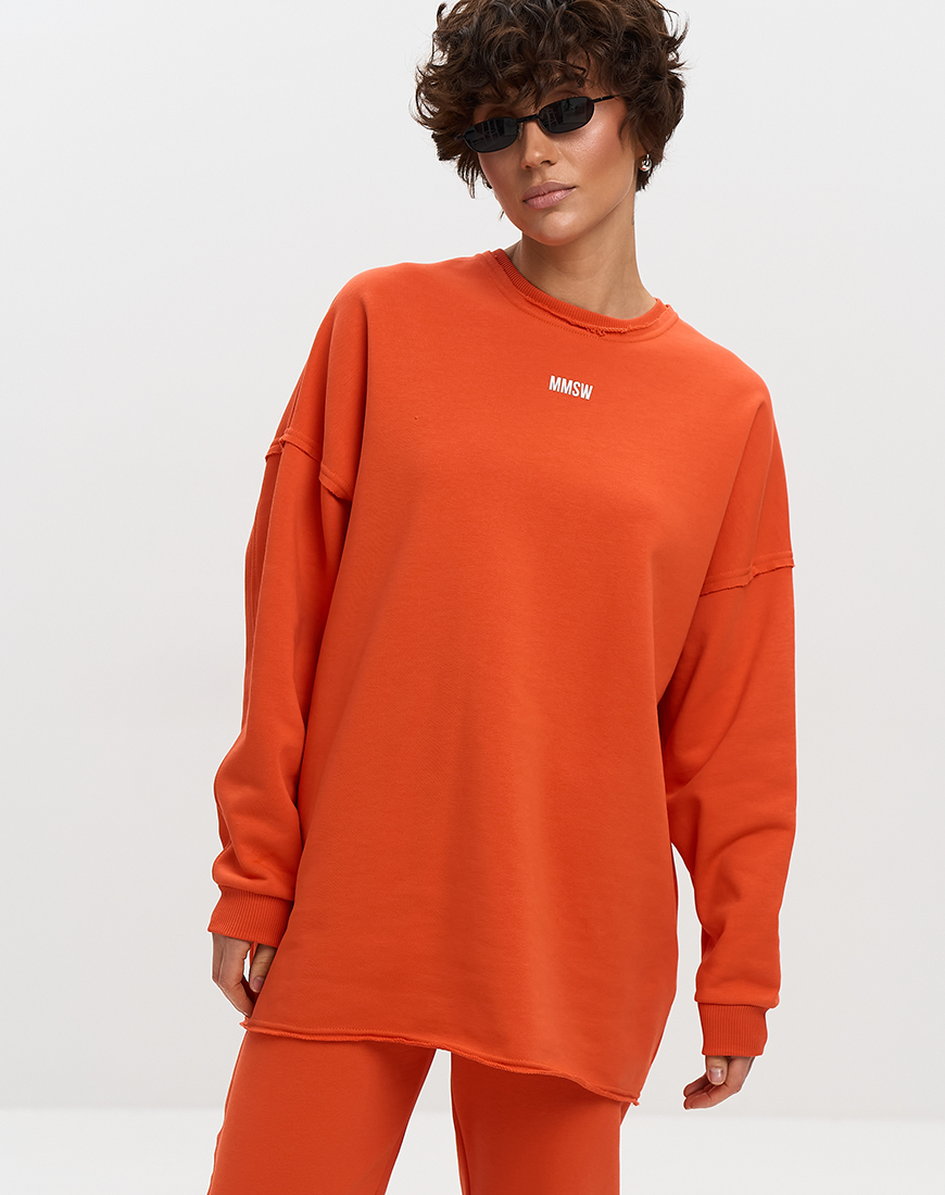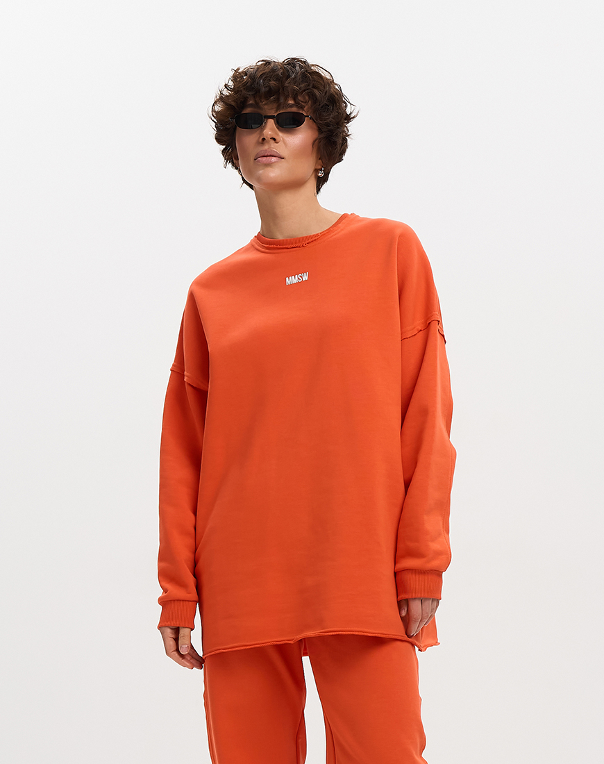 Доставка впродовж 2-5 робочих днівПомаранчевий світшот з необробленими краями — універсальна модель для щоденного гардероба. М’який еластичний трикотаж приємний до тіла та зберігає форму. Прямий силует і необроблені краї додають сучасного характеру, завдяки чому світшот легко поєднується зі спортивними штанами, джогерами та комплектами у стилі кежуал.