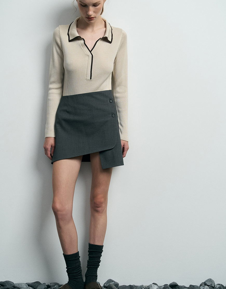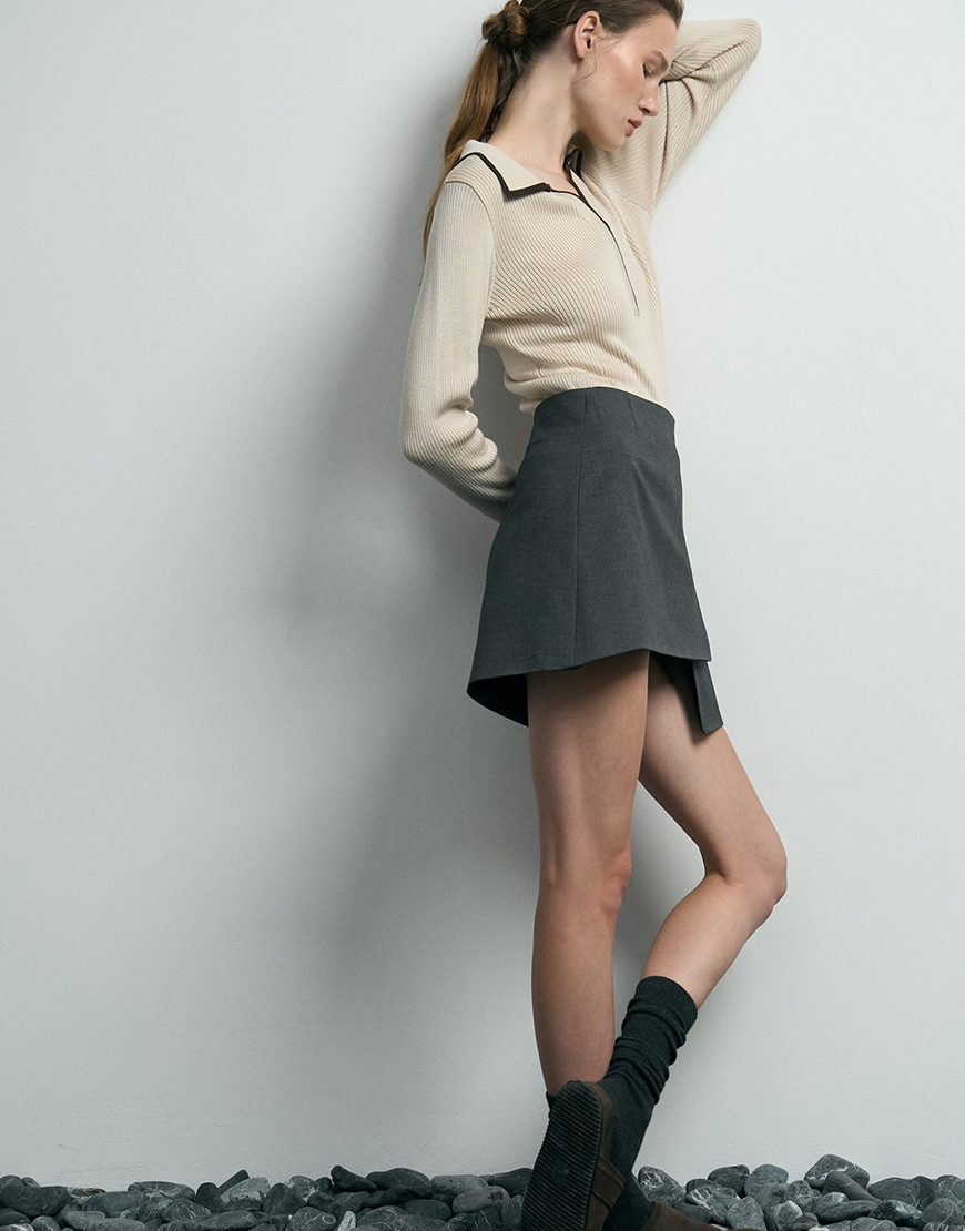 Міні BALANCE оригінального крою з костюмної тканини темно-сірого кольору.