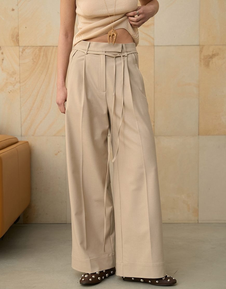 Брюки палаццо з акцентними кишеньками та поясом