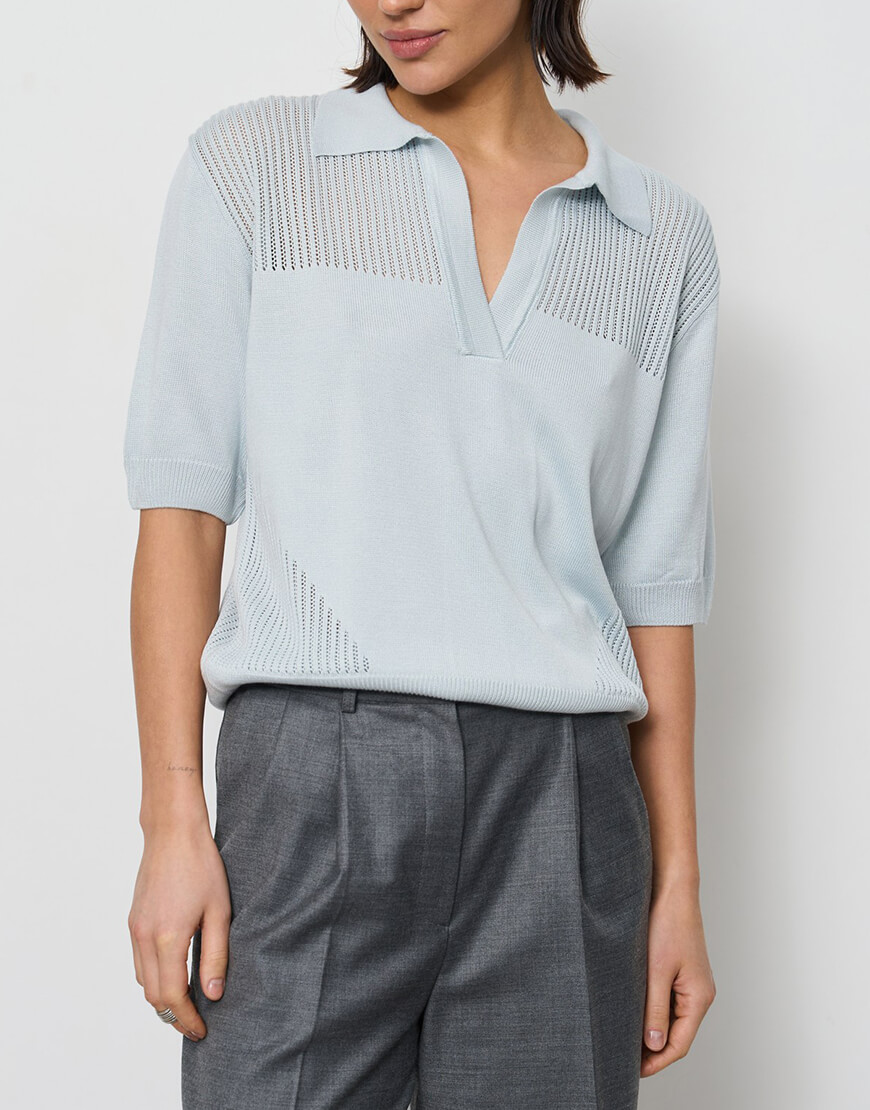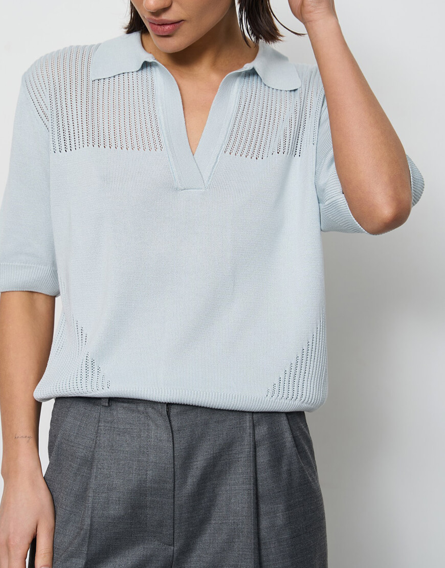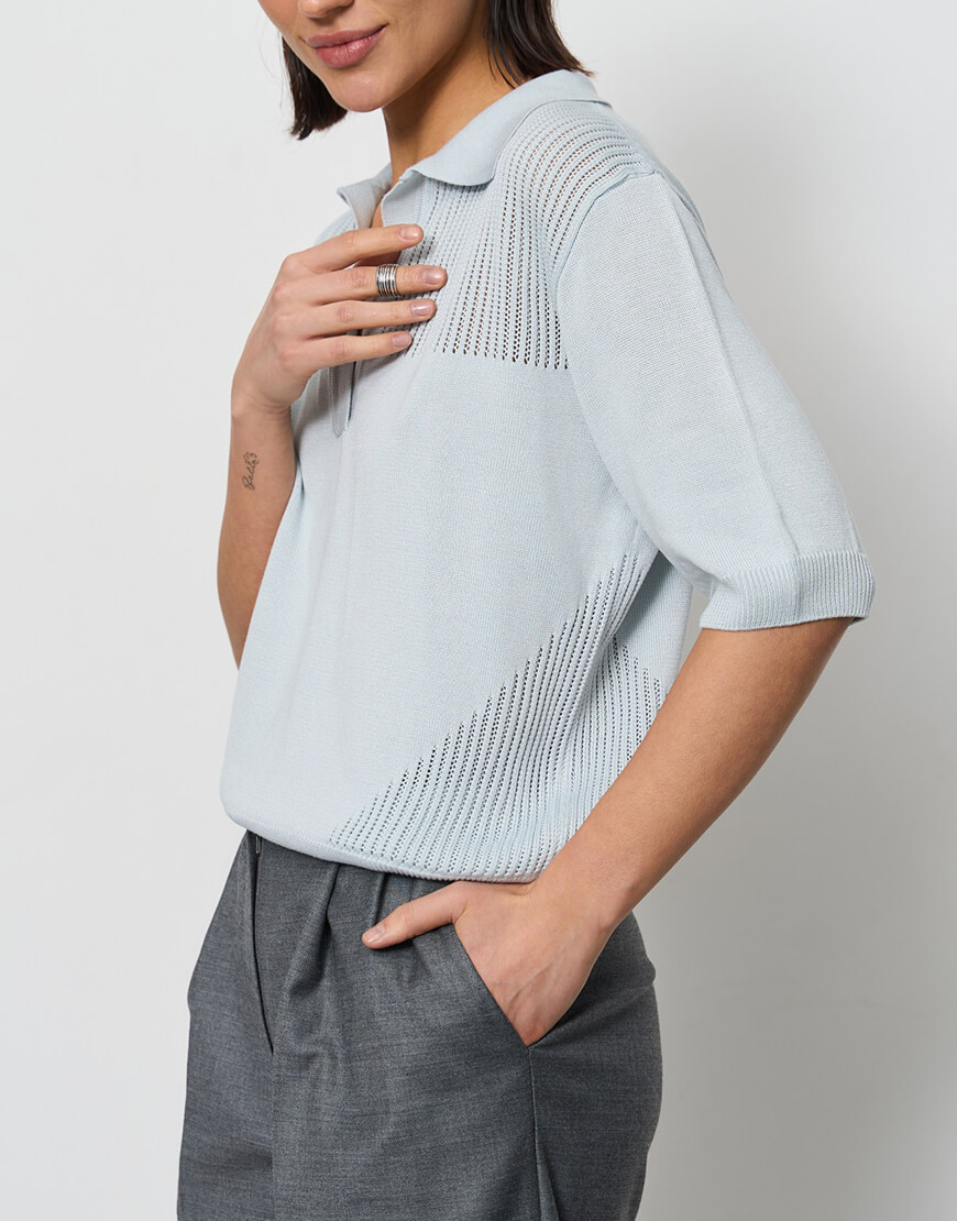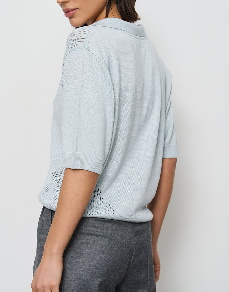 Доставка протягом 2-5 робочих днівТрикотажне поло виконане з натуральної віскозної нитки, надтонке та легке, приємне до тіла, створює відчуття комфорту в проходний літній день, а гігроскопічні властивості тканини дозволяють носити поло і в спекотну погоду