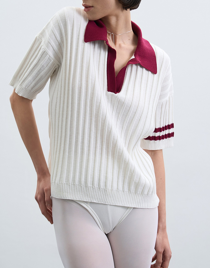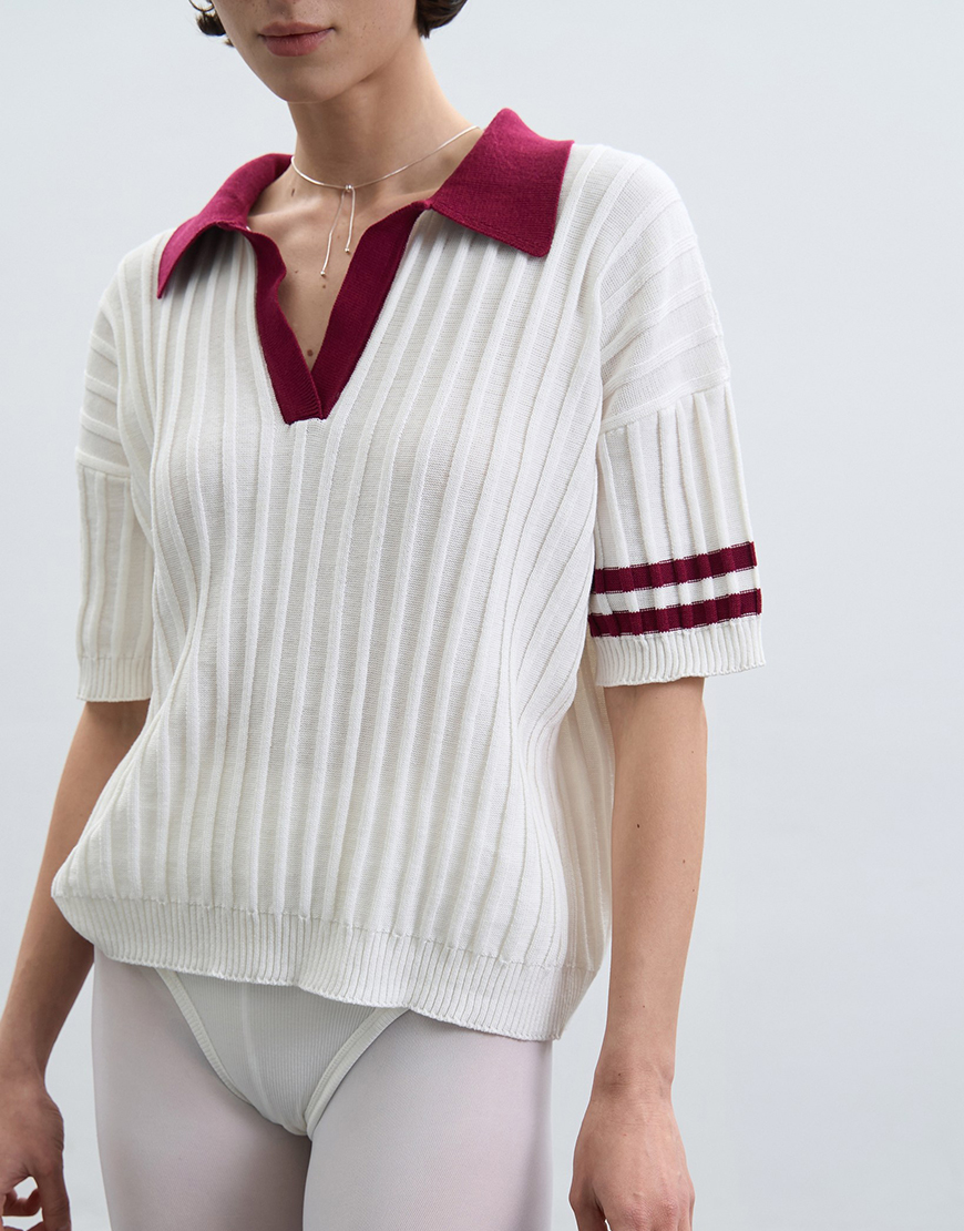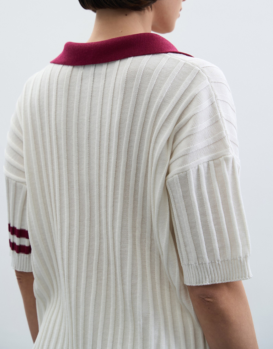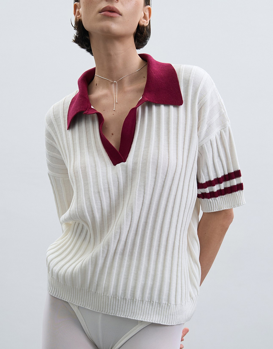 Поло трикотажне вільного крою з акцентним комірцем та смужками на рукаві