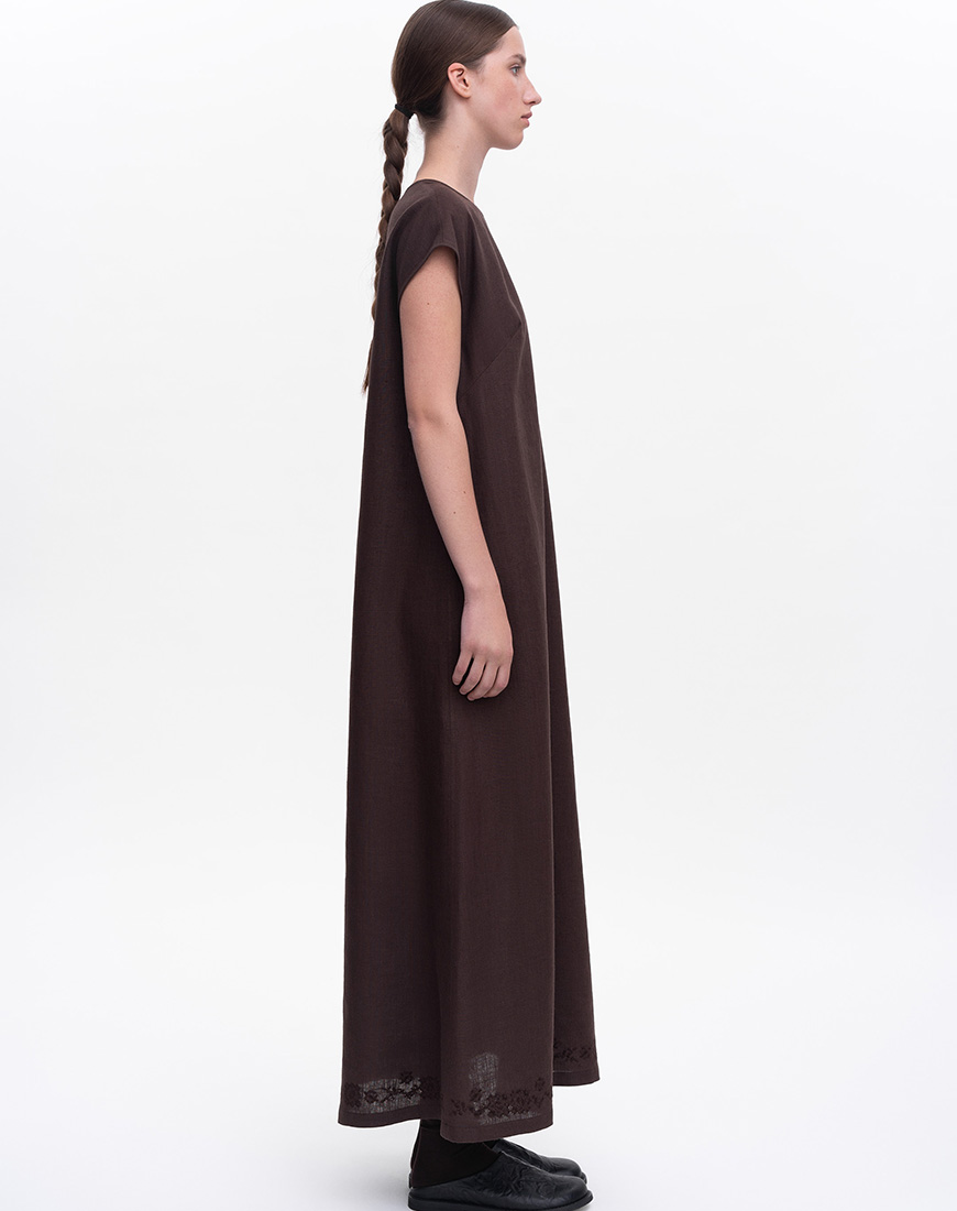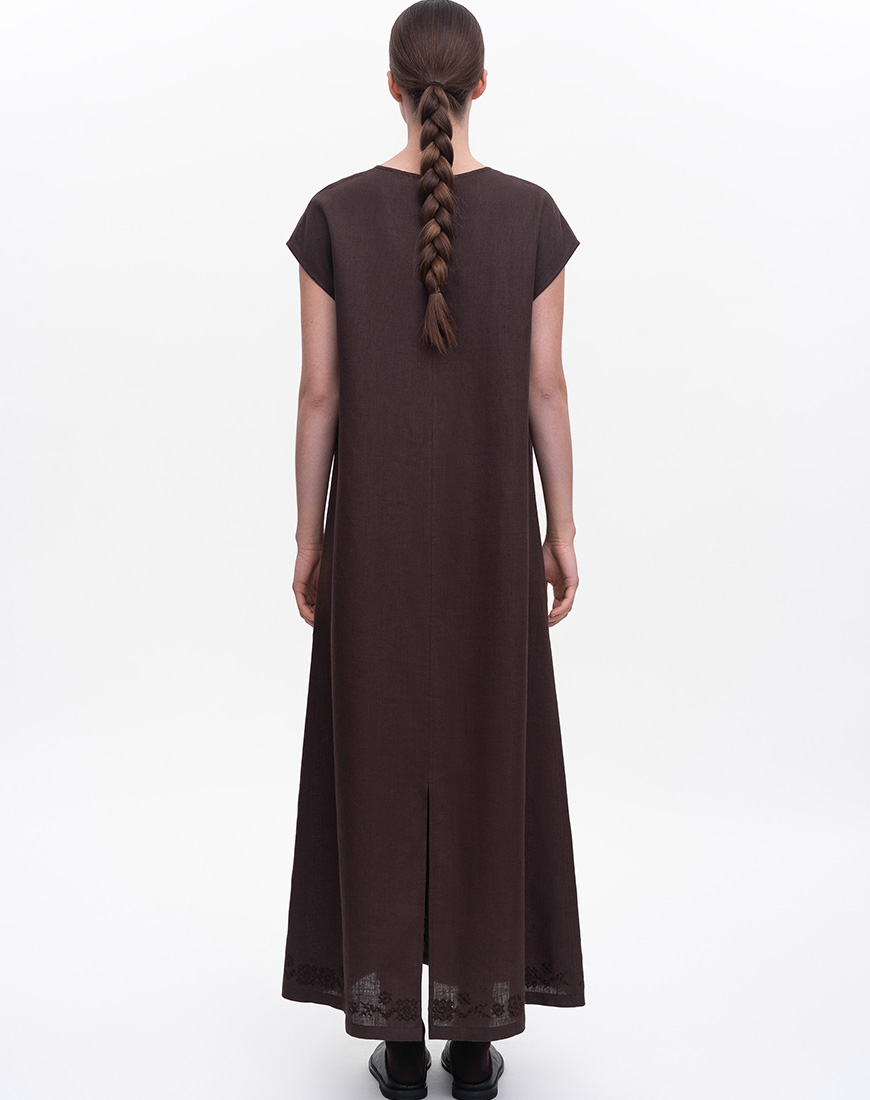 Доставка протягом 2-5 робочих днівДовга темно-коричнева сукня, виконана з льону.