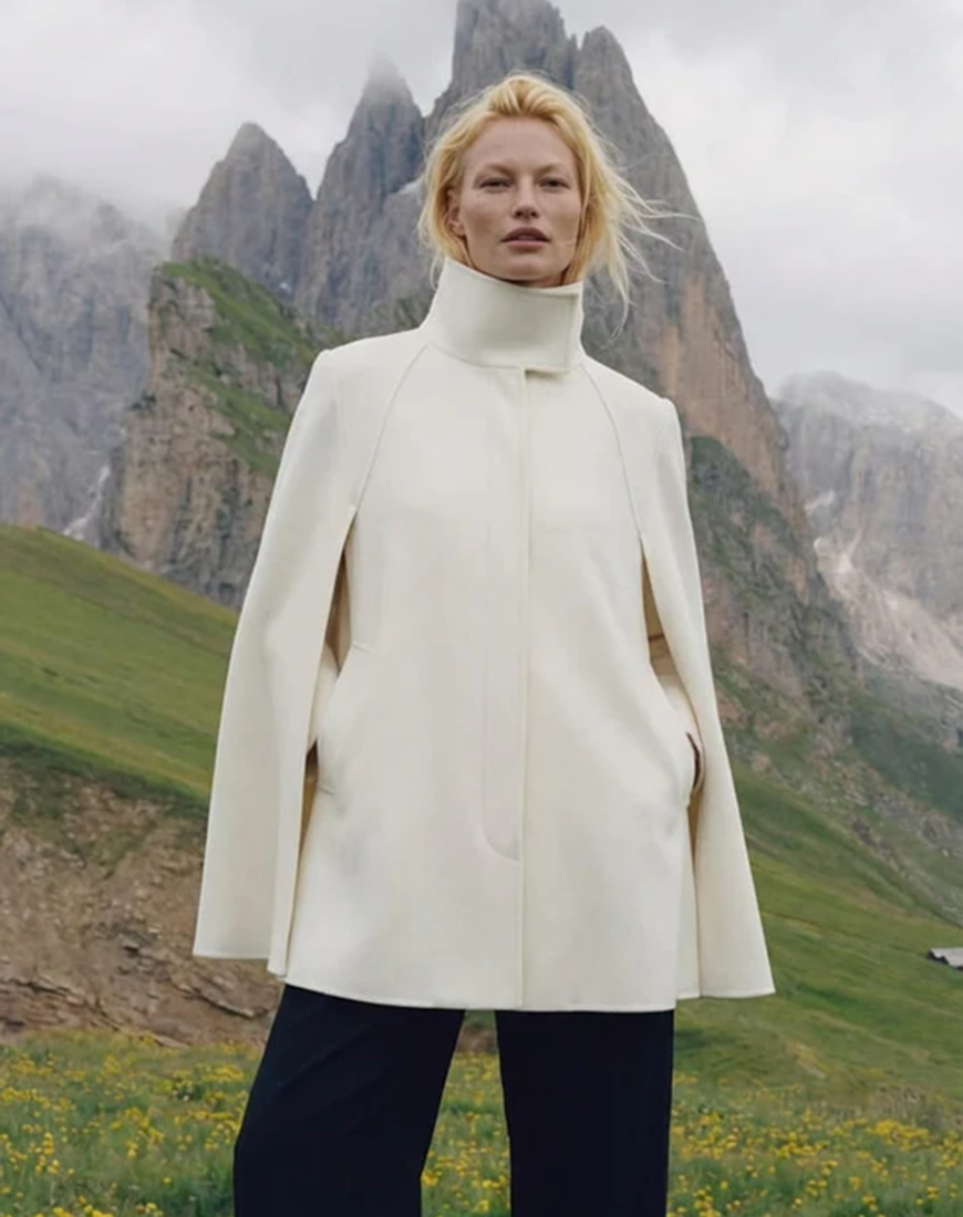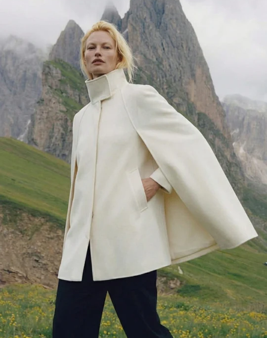 Кейп органічно переходить із денних образів у вечірні, даруючи тепло без зайвої ваги та чітку форму без жорсткості.