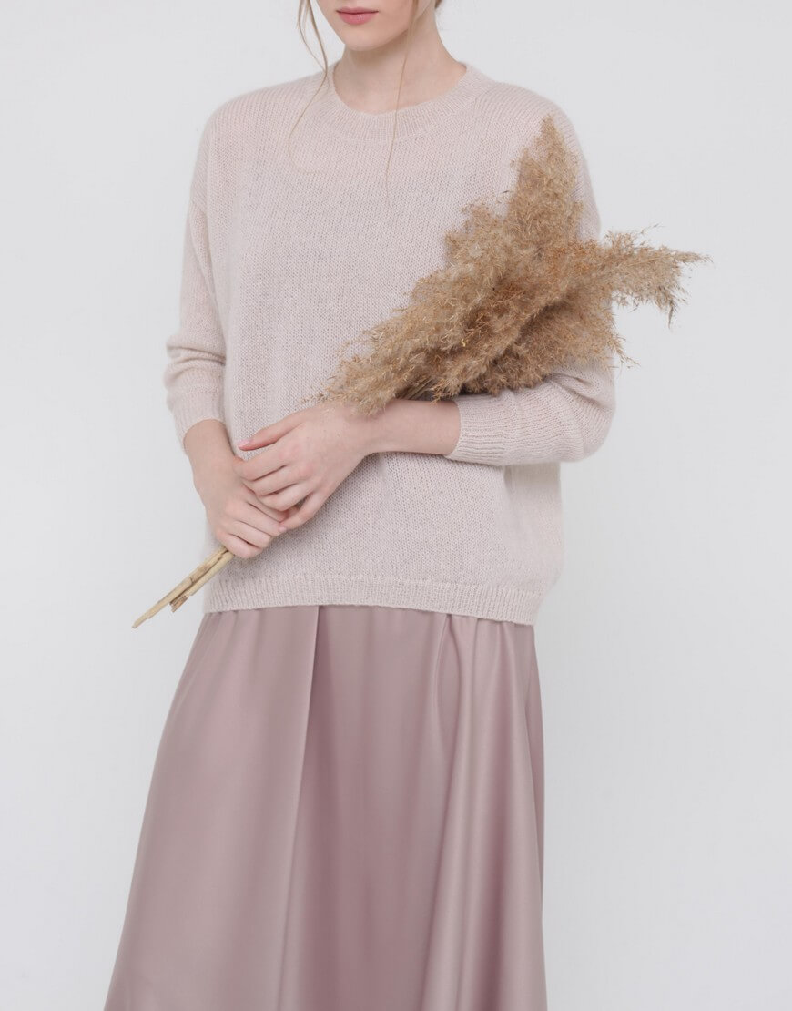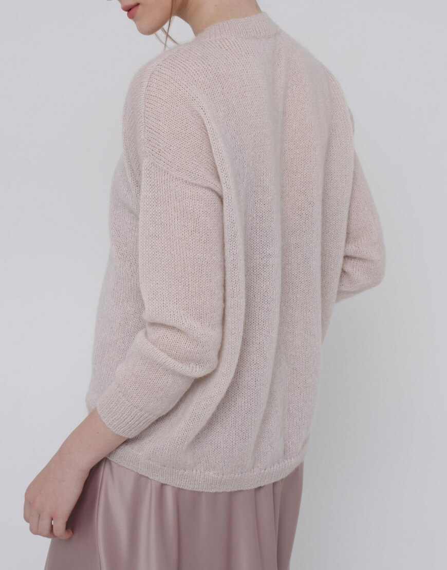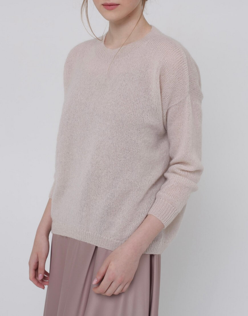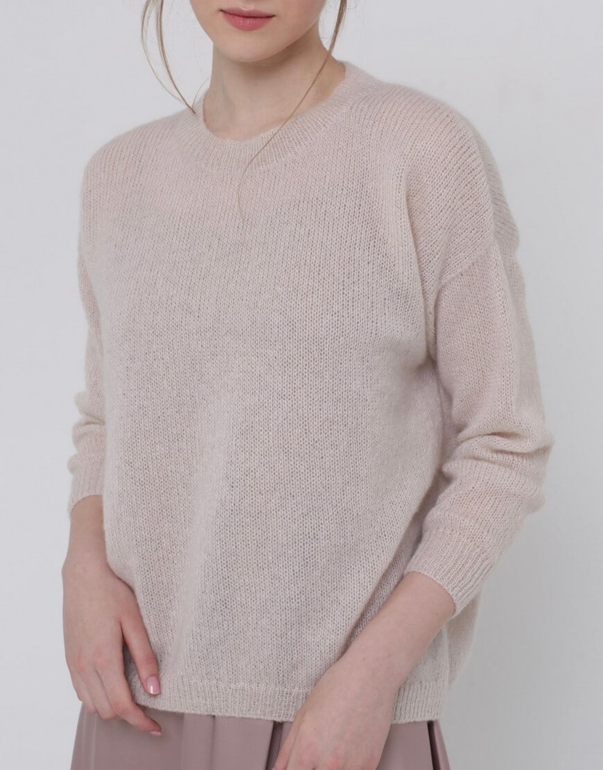 Тонкий светр з кідмохеру, об’ємного силуету з укороченим передом і зі спущеним рукавом