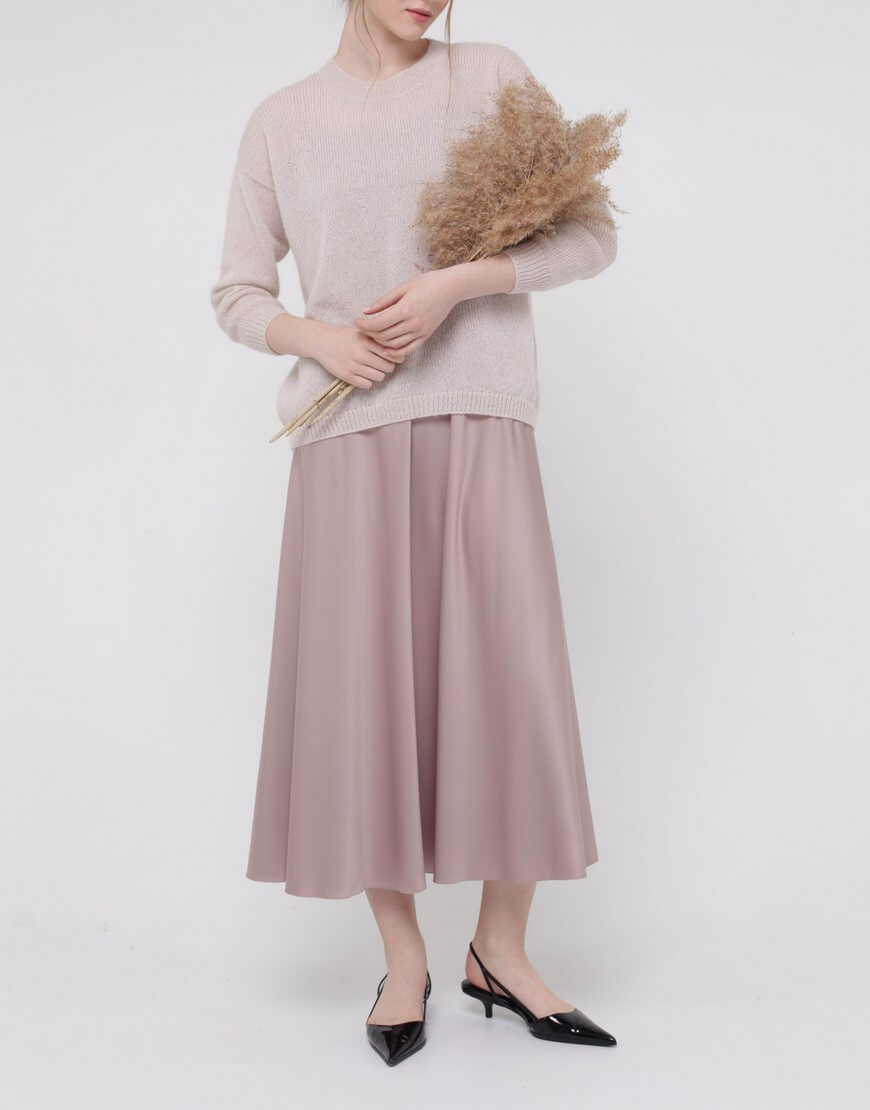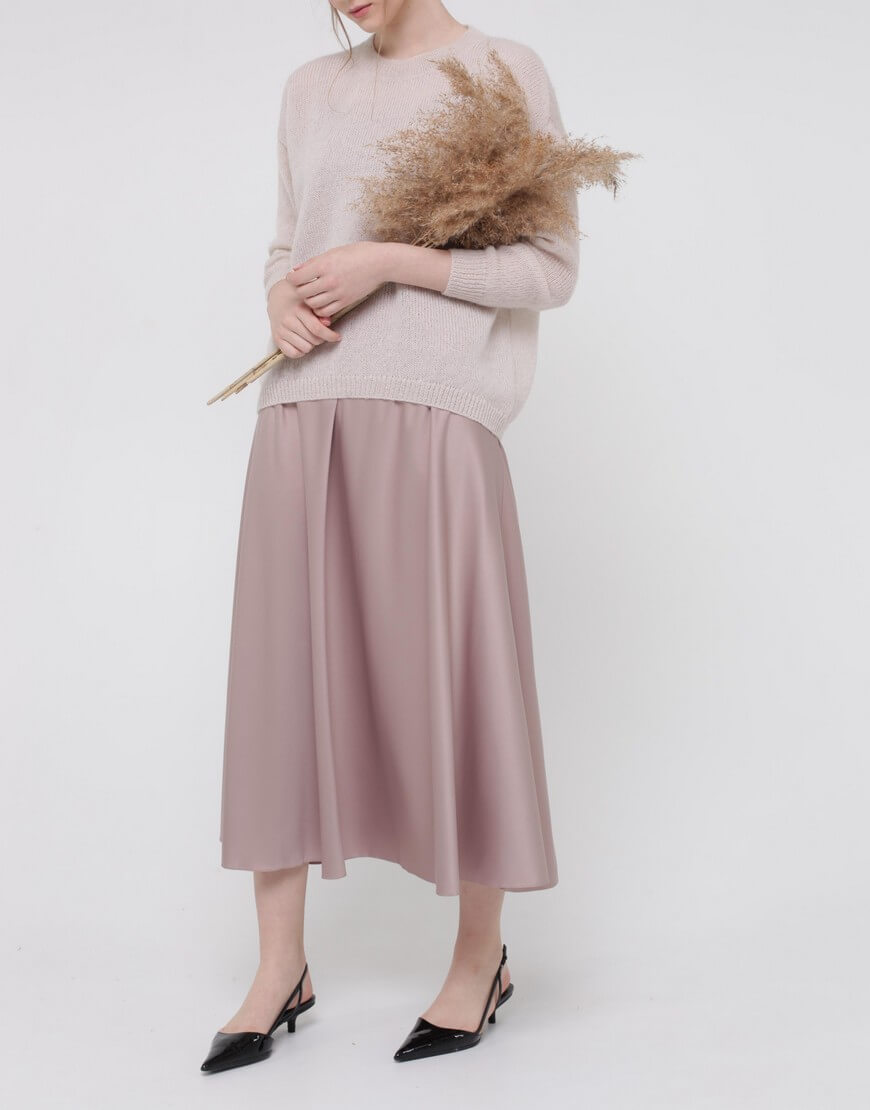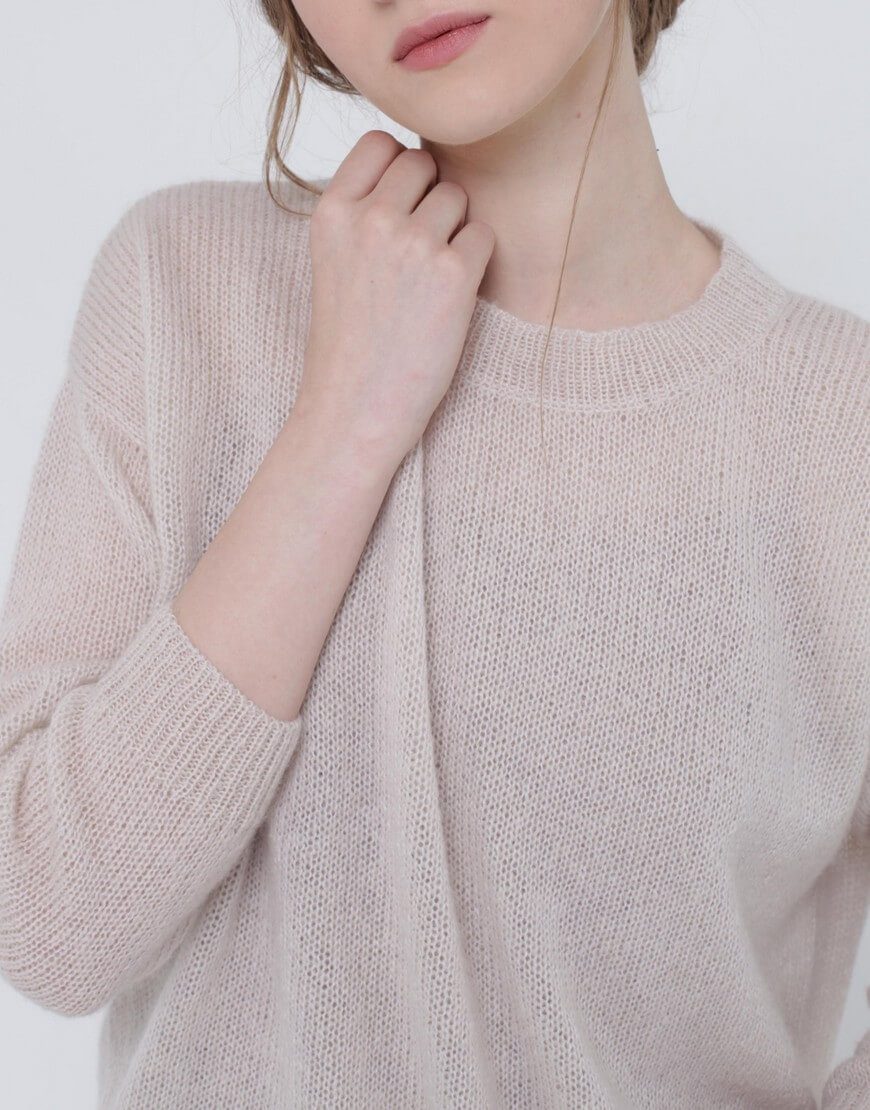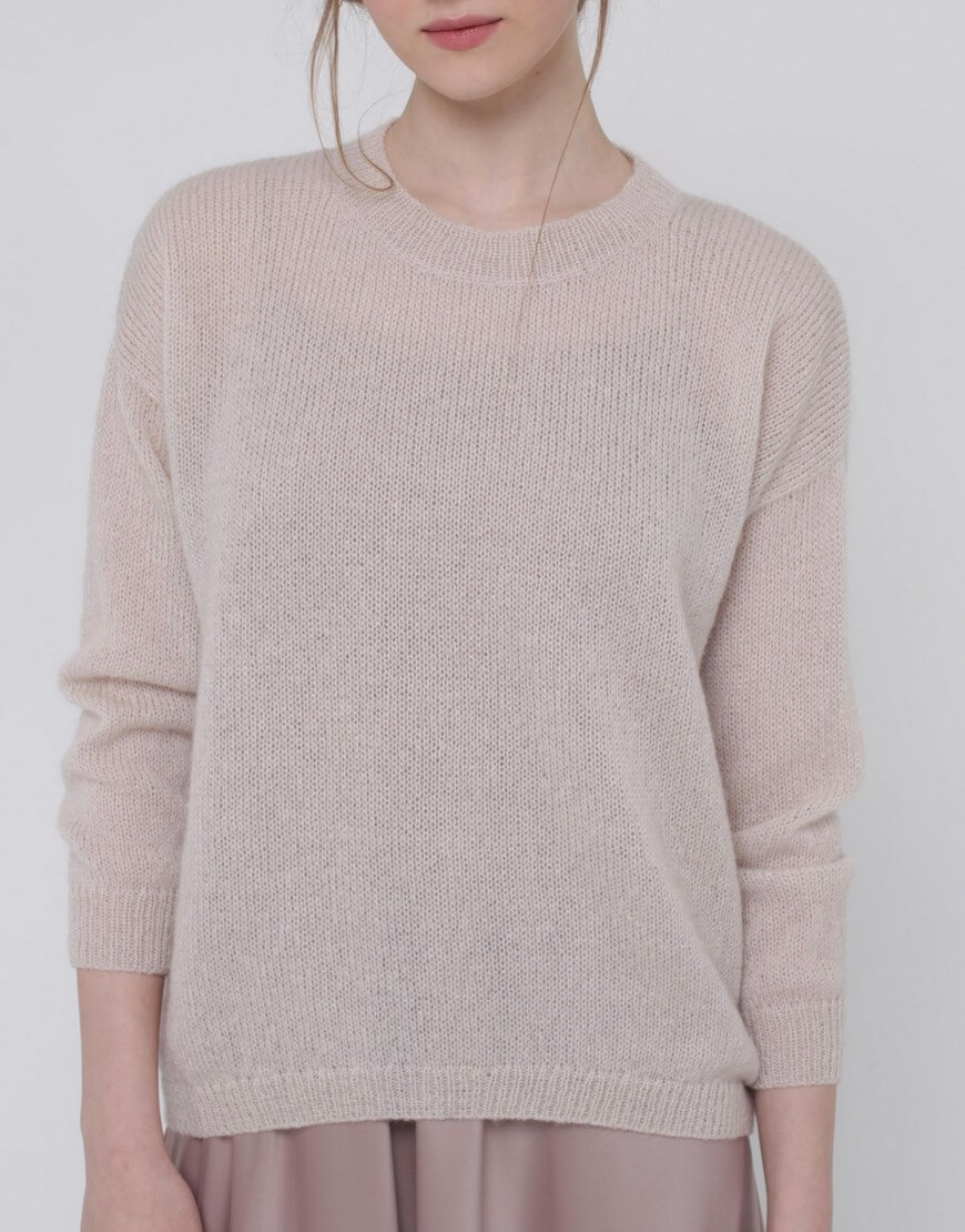 Тонкий светр з кідмохеру, об’ємного силуету з укороченим передом і зі спущеним рукавом