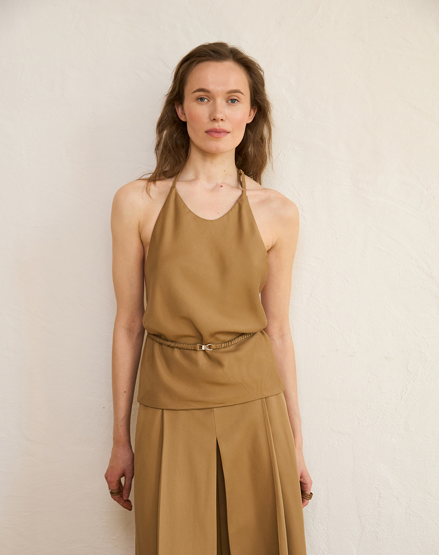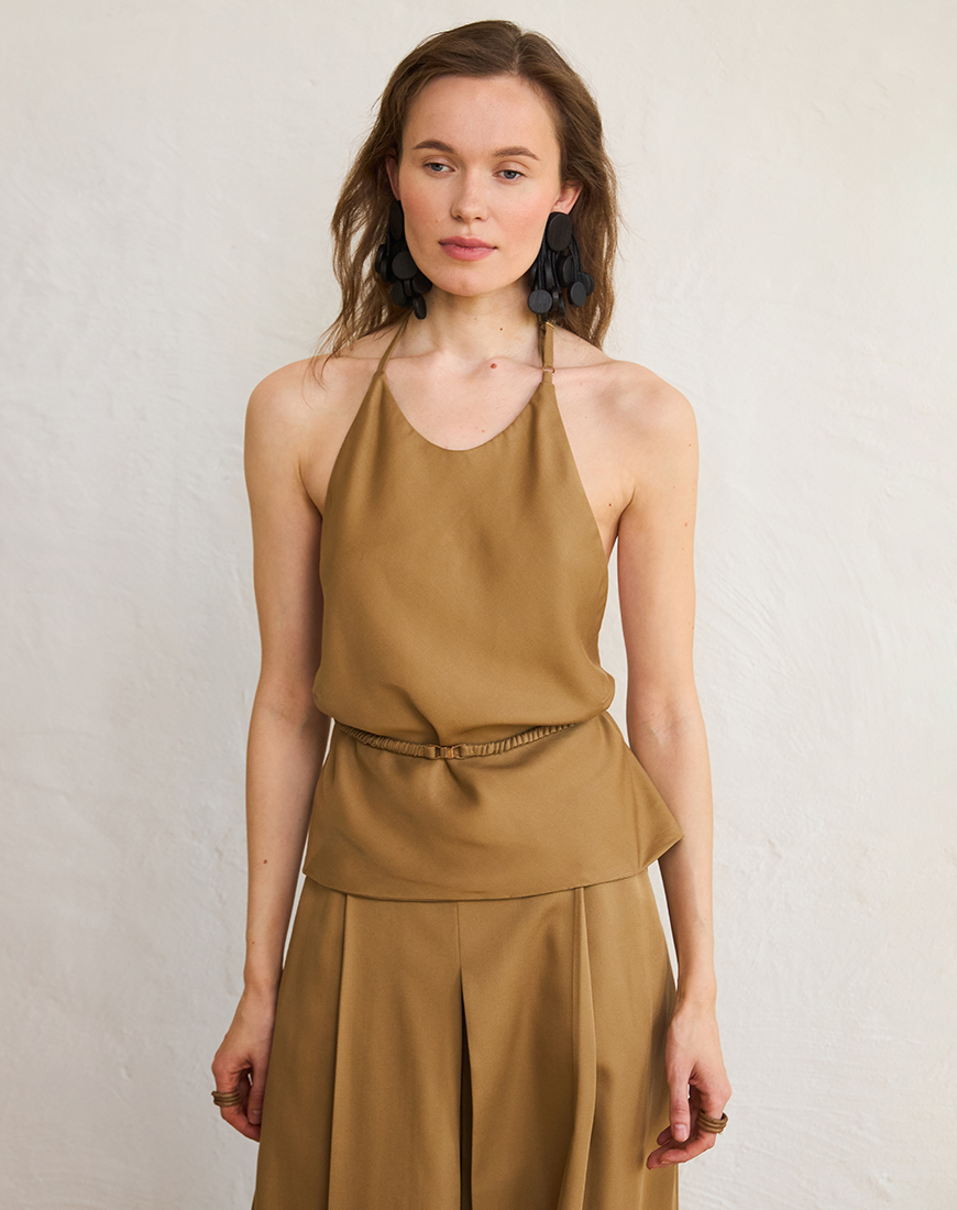 Доставка впродовж 2-14 робочих днівТоп з відкритою спиною з тенселю поєднує в собі м’якість, елегантність і сучасний мінімалізм. Виготовлений з легкого, повітропроникного тенселю, він красиво лягає по тілу, одночасно підтримуючи комфорт і прохолоду. Деталь відкритої спини додає витончену нотку чуттєвості, роблячи його актуальним як для повсякденного носіння, так і для урочистих подій.