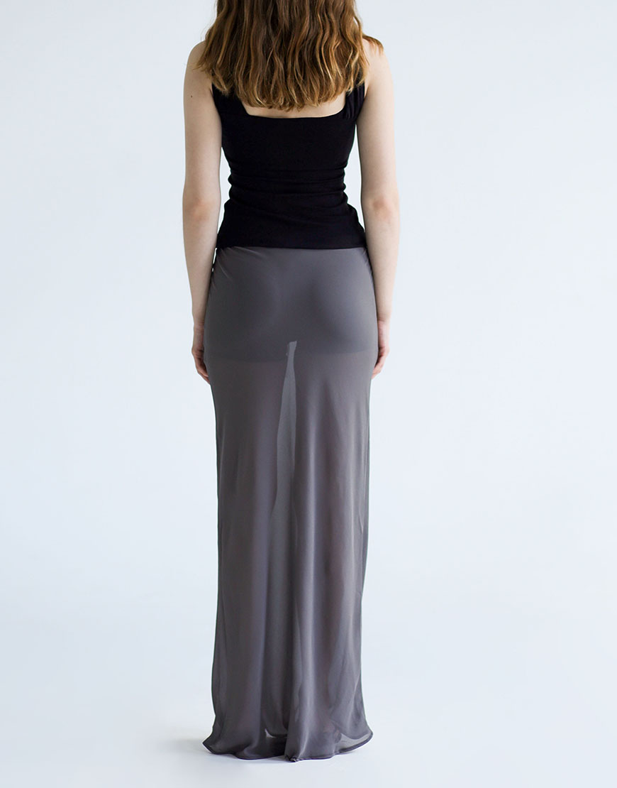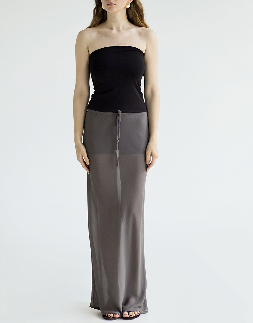 Доставка впродовж 2-5 робочих днівШифонова максі-спідниця по косій , має тонкий пояс-шнурок