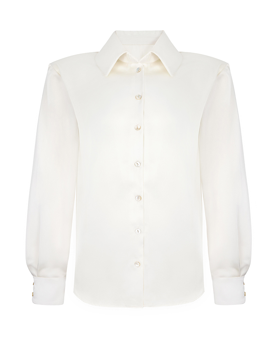 Доставка впродовж 2-5 робочих днівСатинова сорочка кольору шапмпань з підплічниками, класичного крою . Сорочка виготовлена з щільної , але легкої та струмуючої тканини