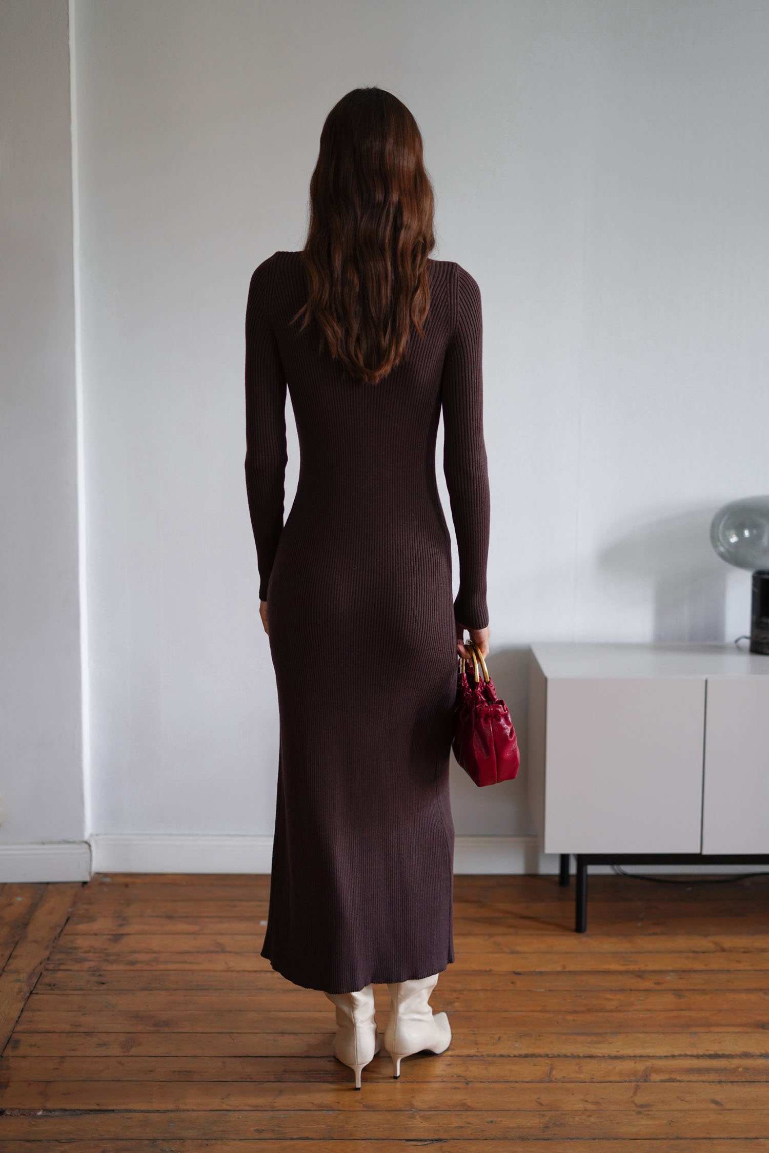 ДоставкаМаксі трикотажна сукня на ґудзиках шоколадного кольору.