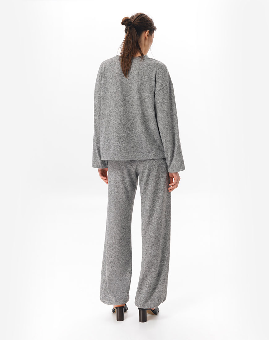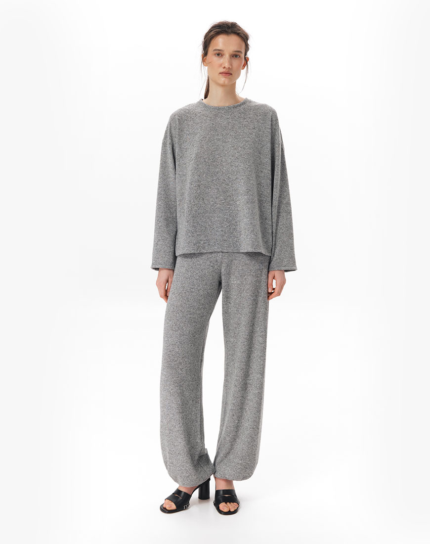 Доставка впродовж 5-7 робочих днівТрикотажні штани з віскози з додаванням вовни. М’яка тонка тканина, легка й трохи тепліша завдяки вовняній нитці. Еластичний пояс. Унизу штанин — гумка, що формує акуратний об’єм. Базові штани, які можна носити окремо або як комплект із трикотажним лонгслівом з цієї ж колекції. Ідеальний варіант для подорожей