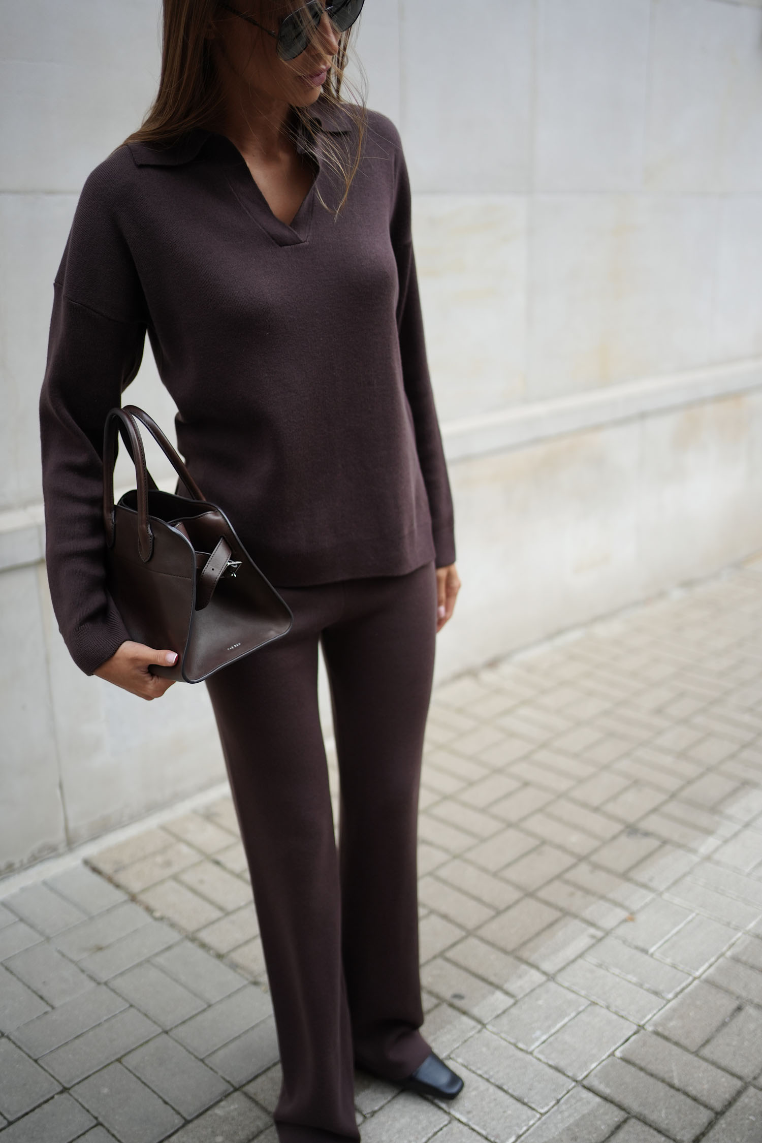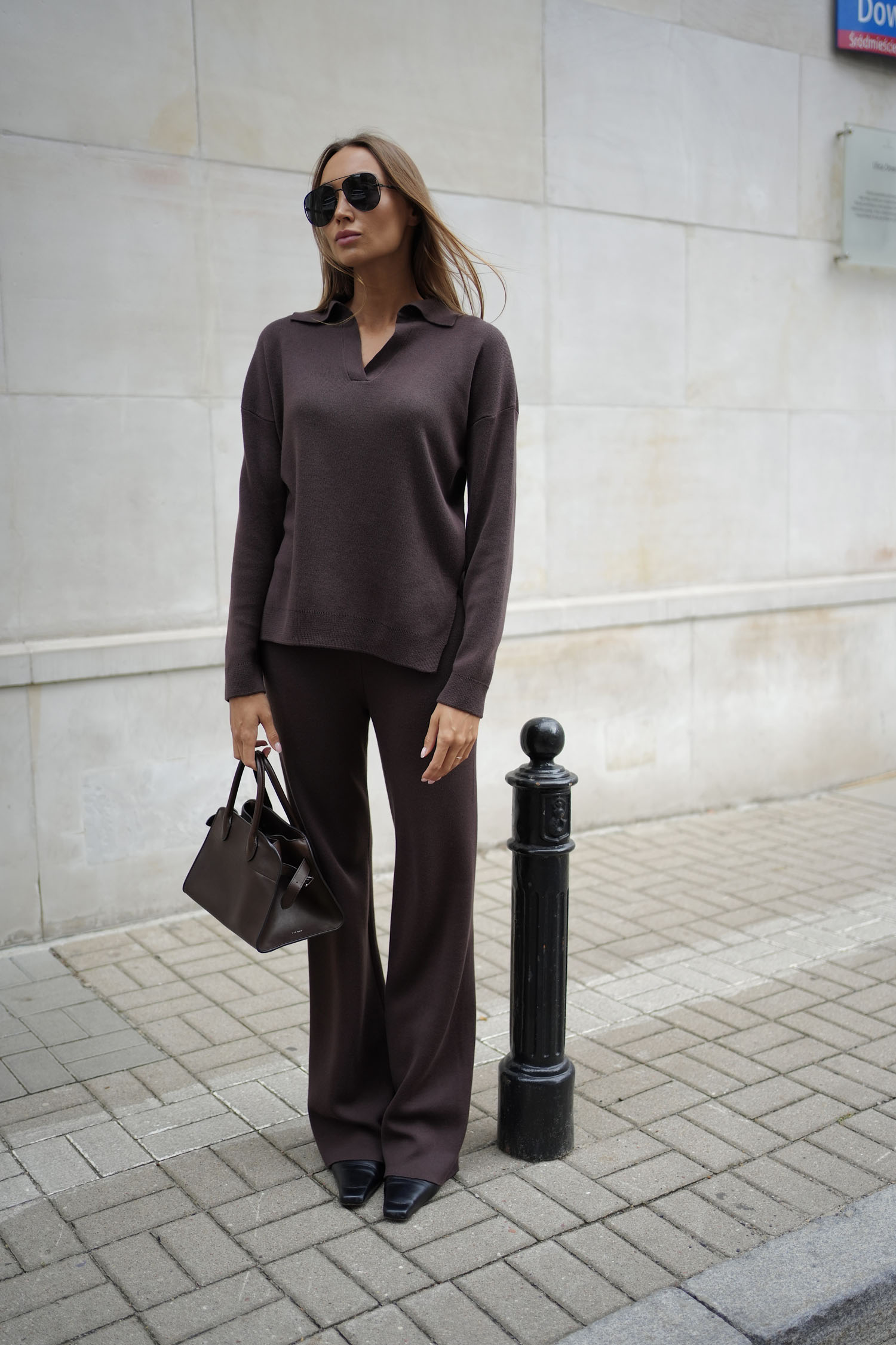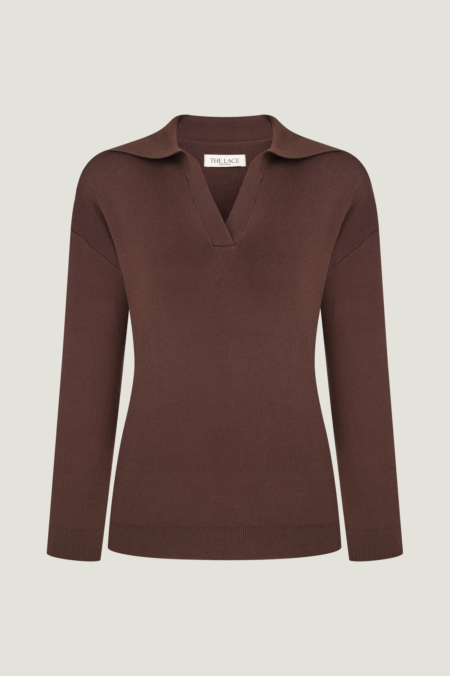 ДоставкаДжемпер поло шоколадного кольору з довгими рукавами, виконаний із щільного, але м’якого трикотажу. Манжети оснащені еластичними резинками. Тканина приємна на дотик. Базова річ осіннього гардероба, яка легко доповнить будь-який аутфіт.