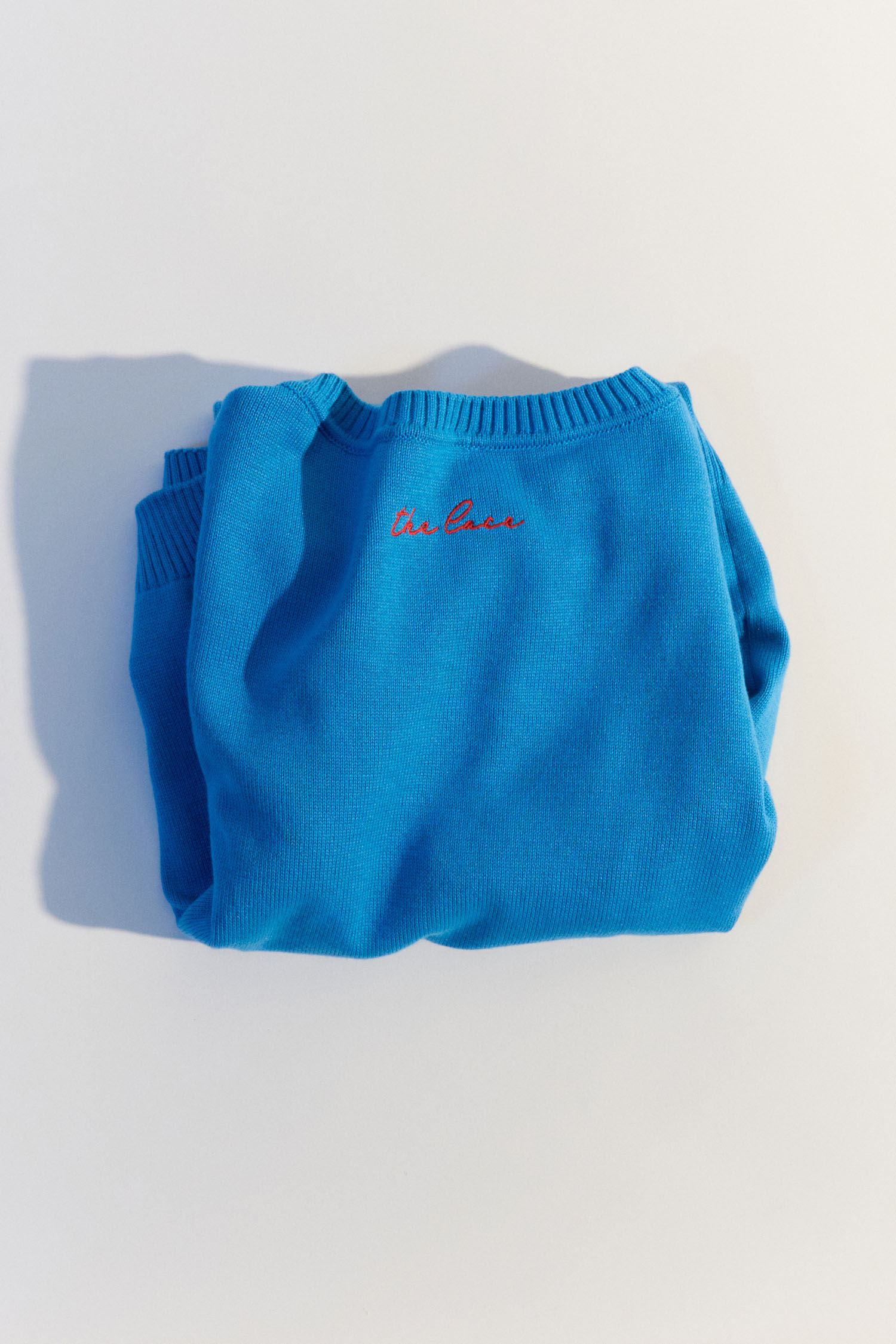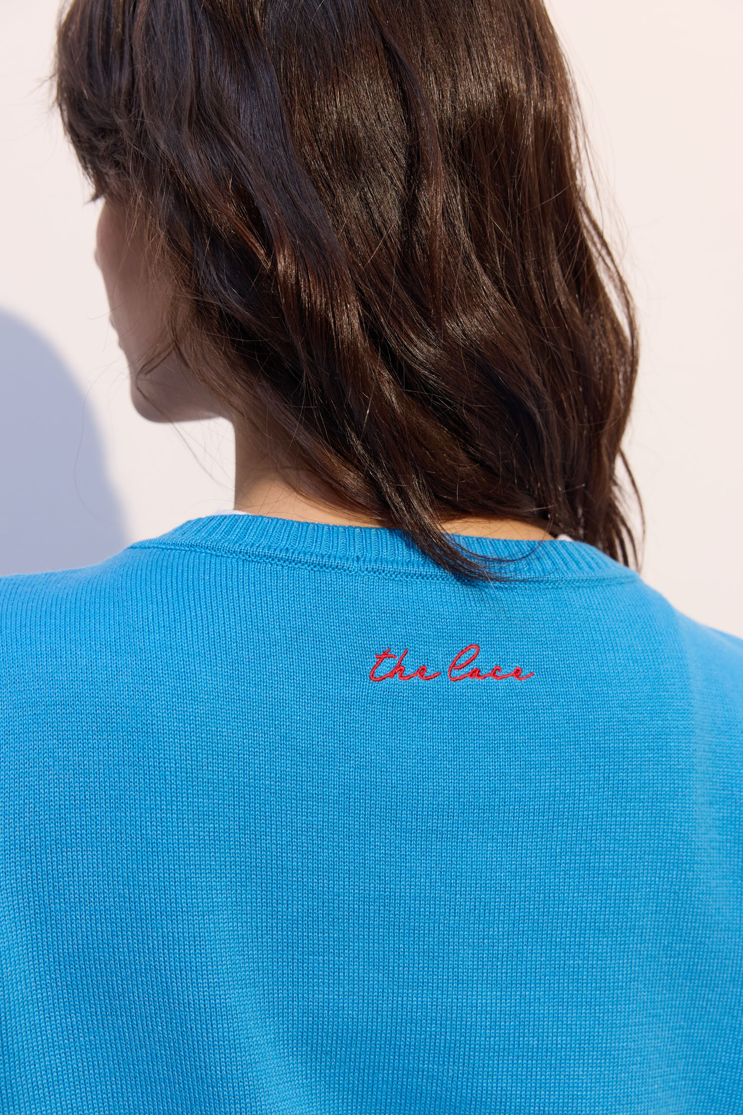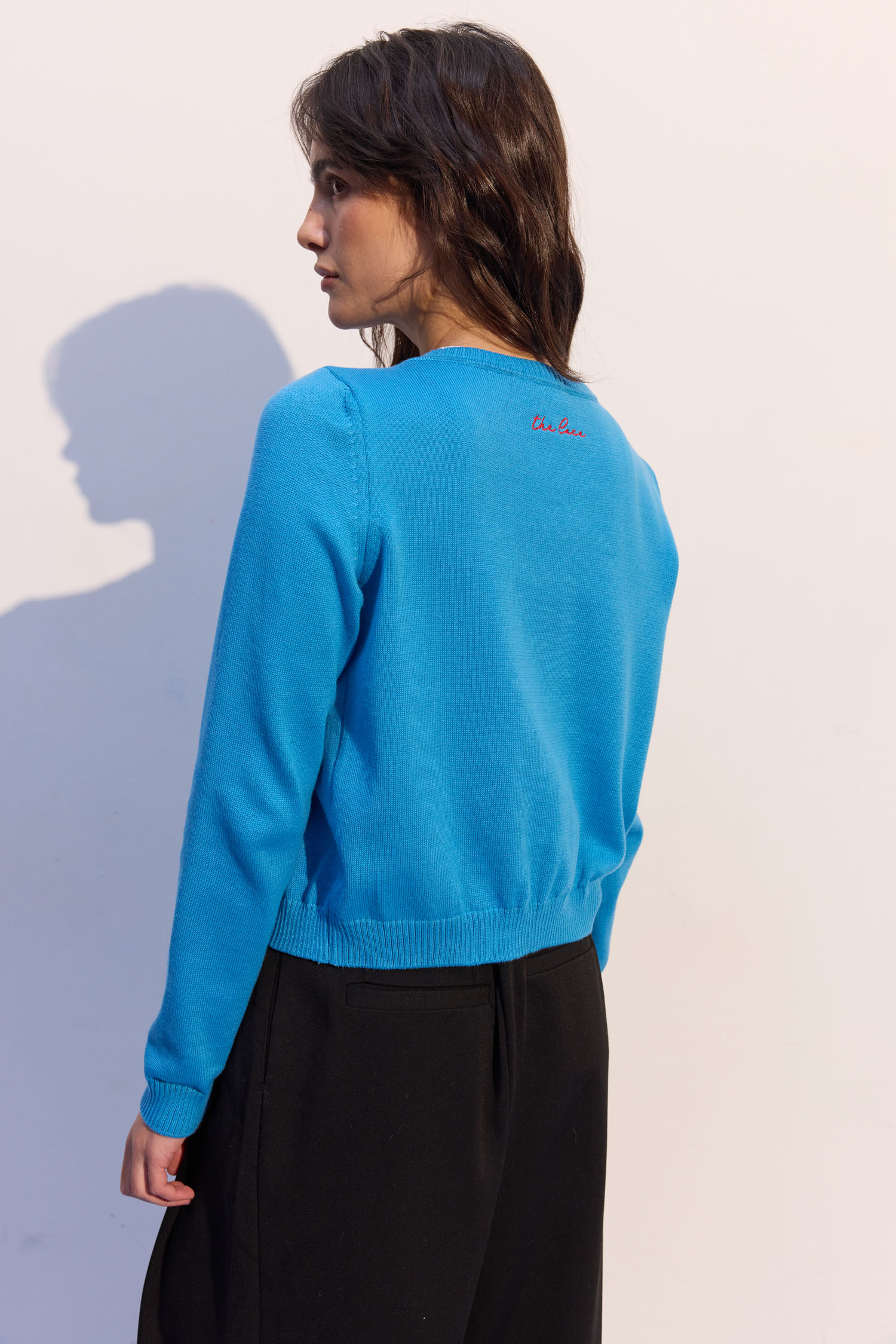 Трикотажний кардиган з круглим вирізом та вишивкою яскраво-блакитний