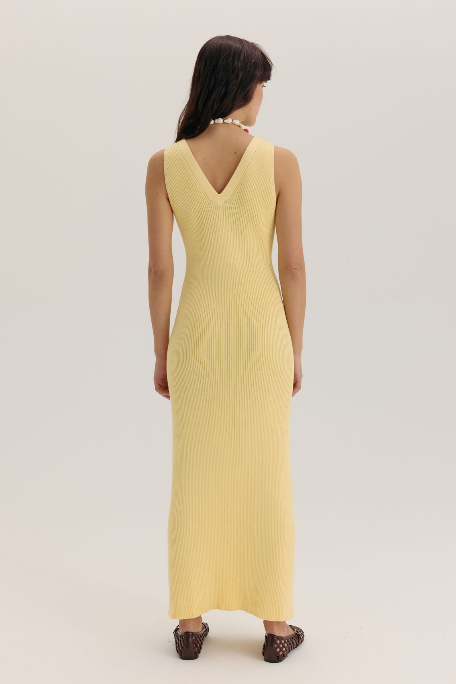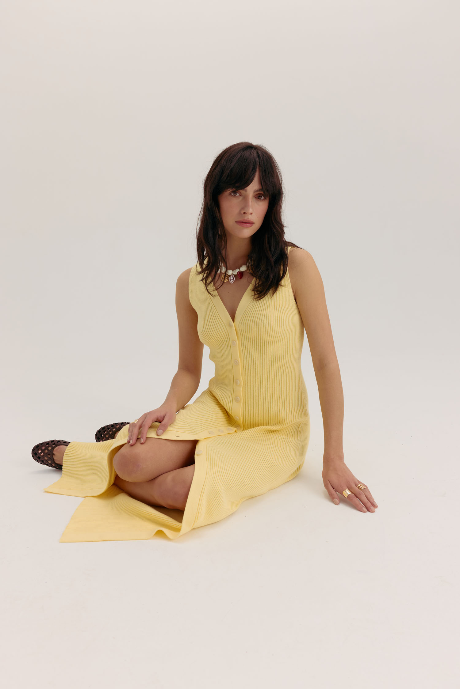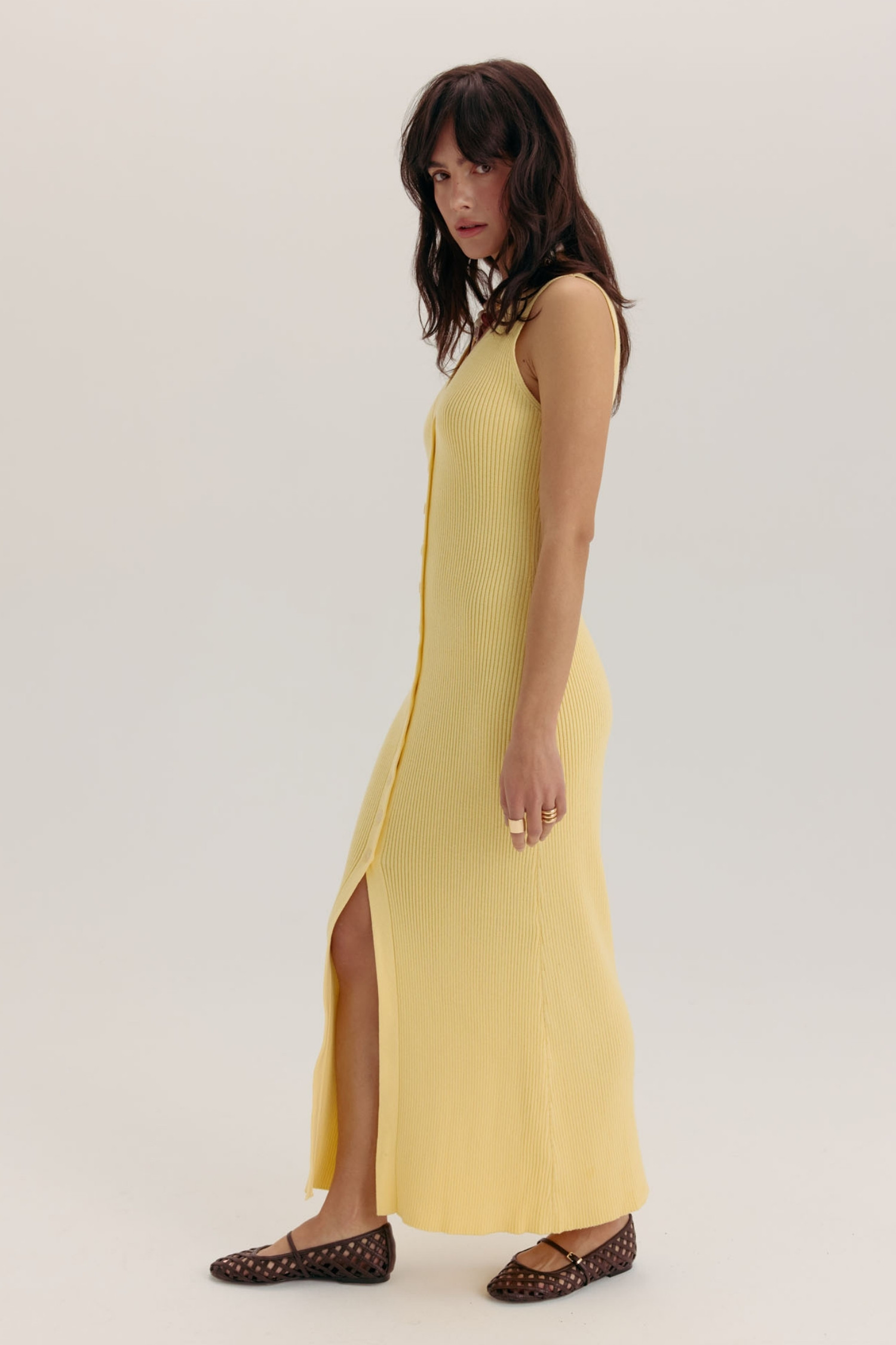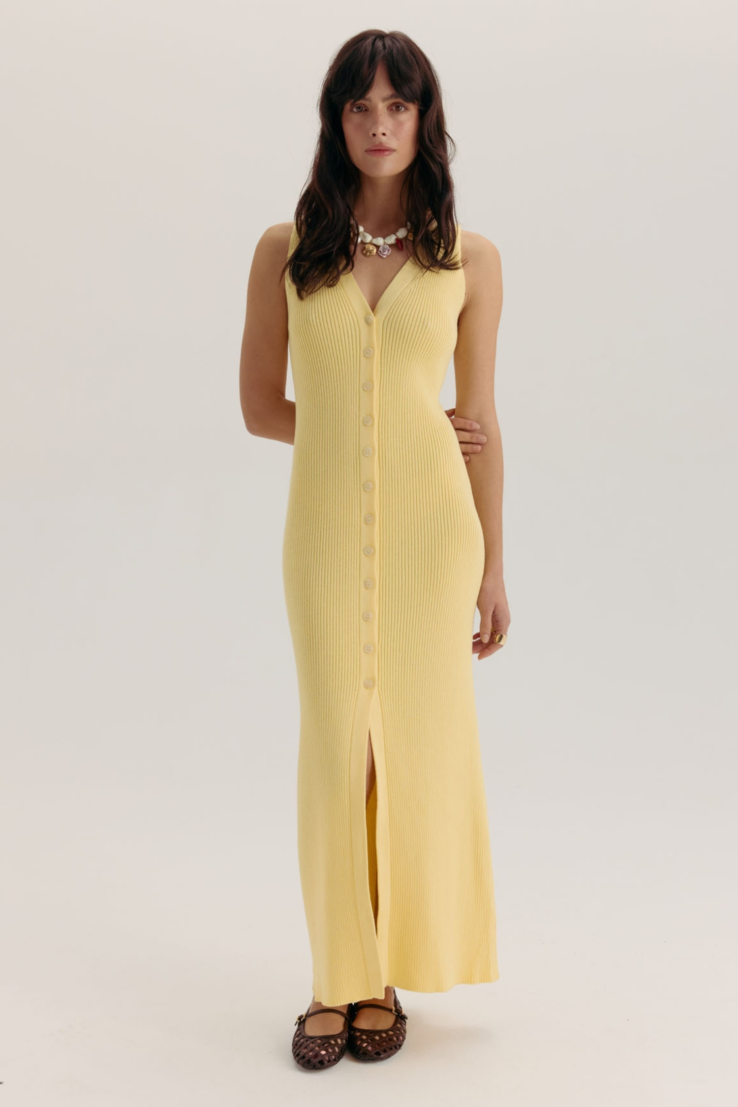 Трикотажний сарафан максі на ґудзиках лимонний