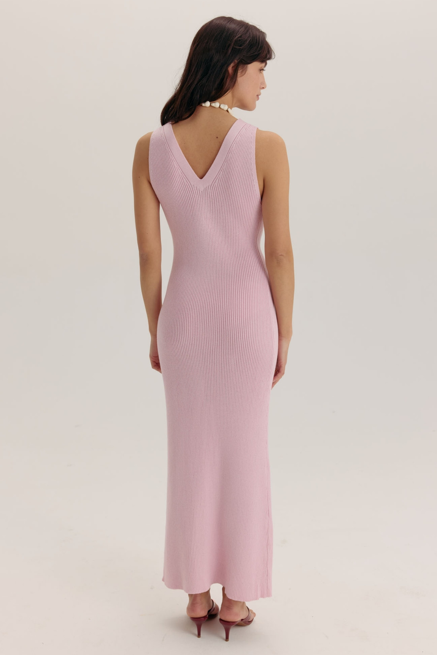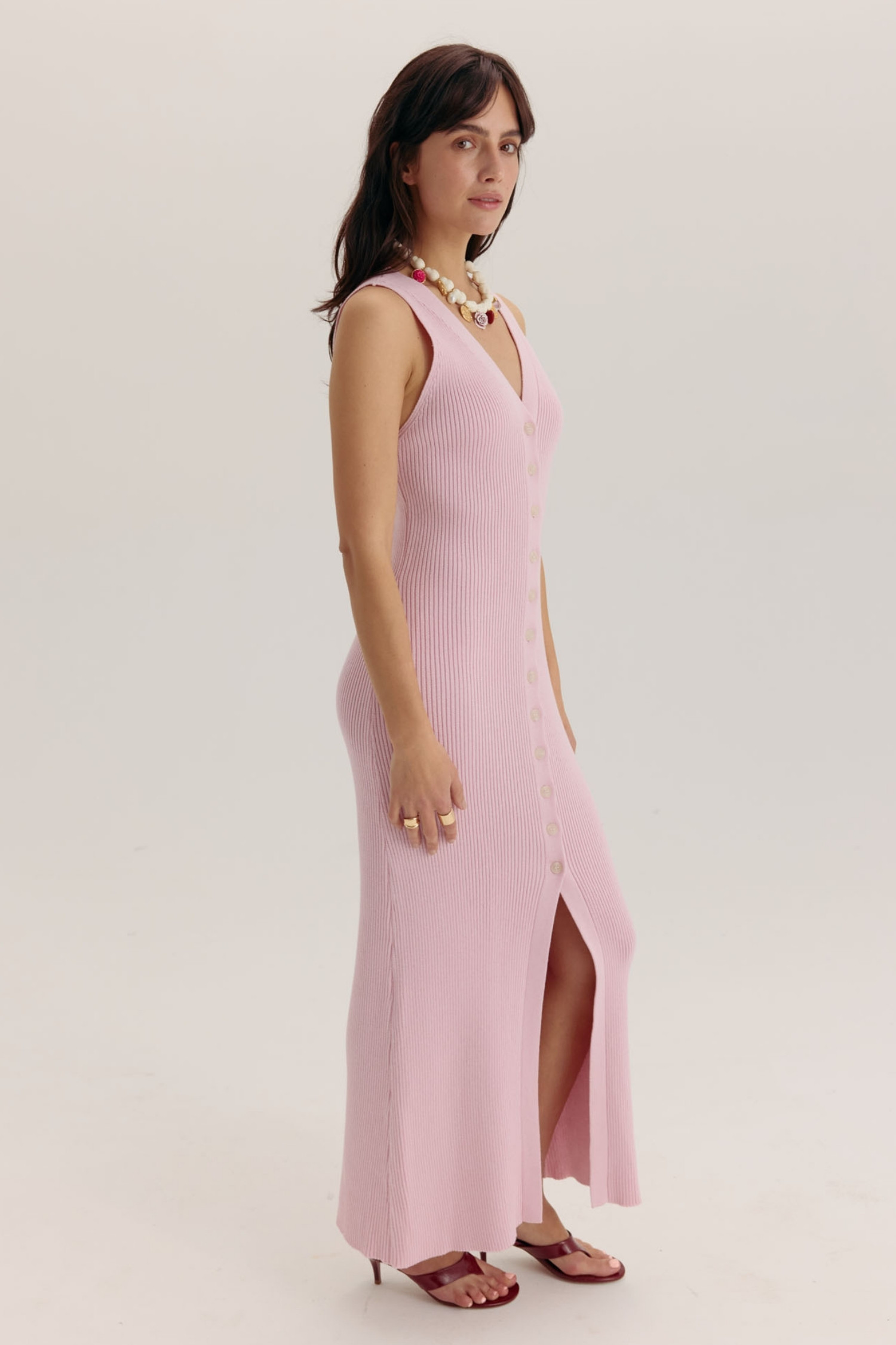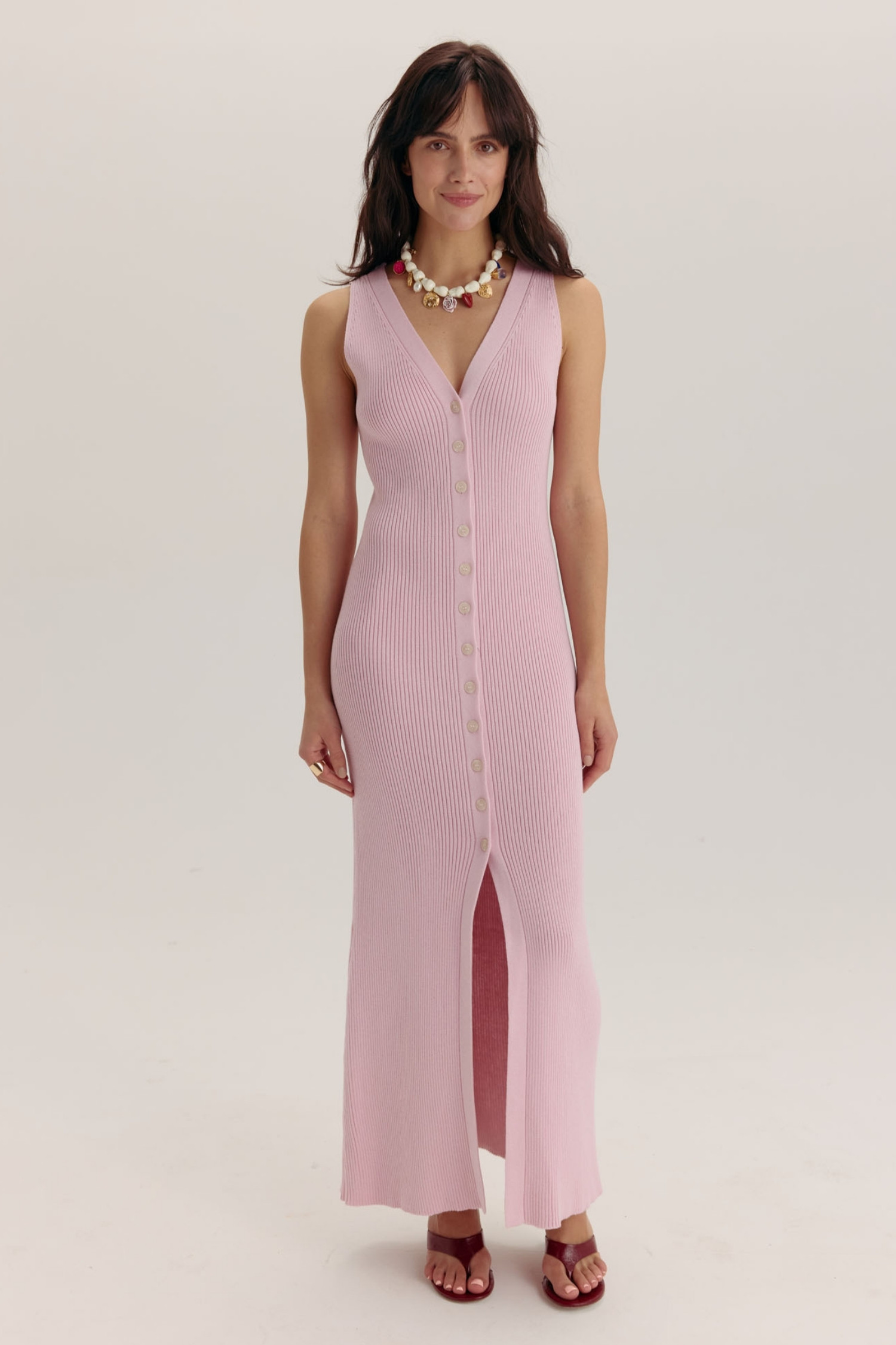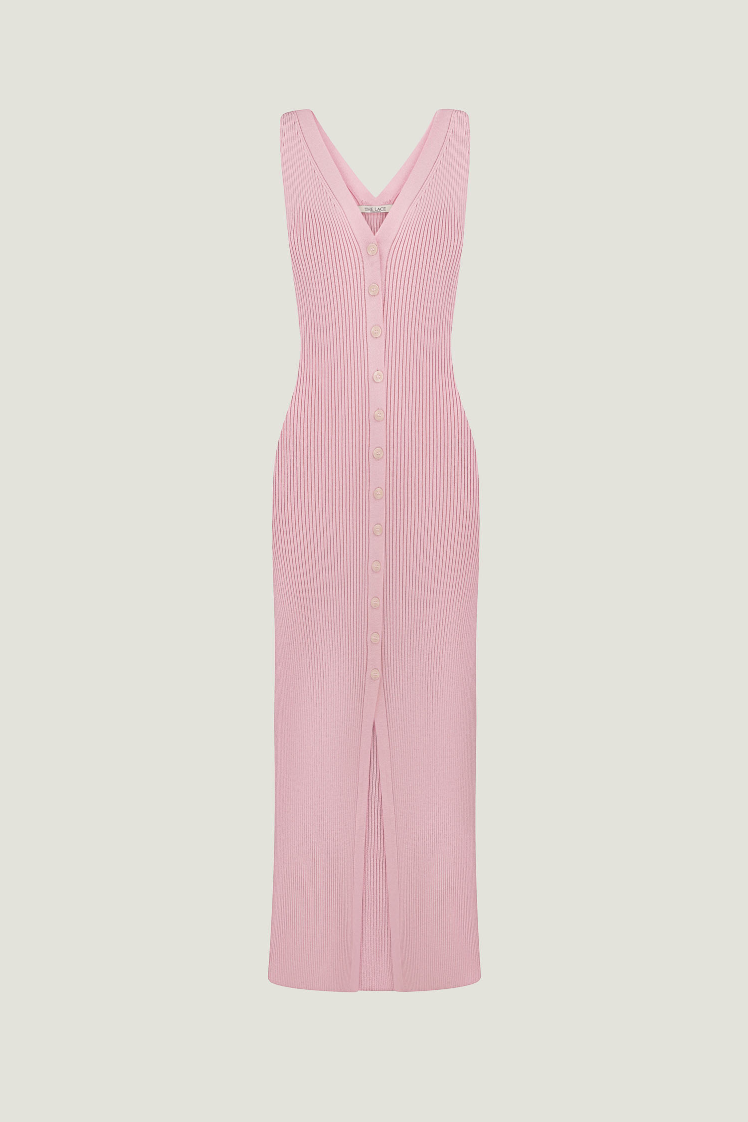 ДоставкаТрикотажний рожевий сарафан із застібкою на ґудзики. Виготовлений з бавовняної пряжі, довжина – максі. Має приталений крій, що чітко окреслює силует.
