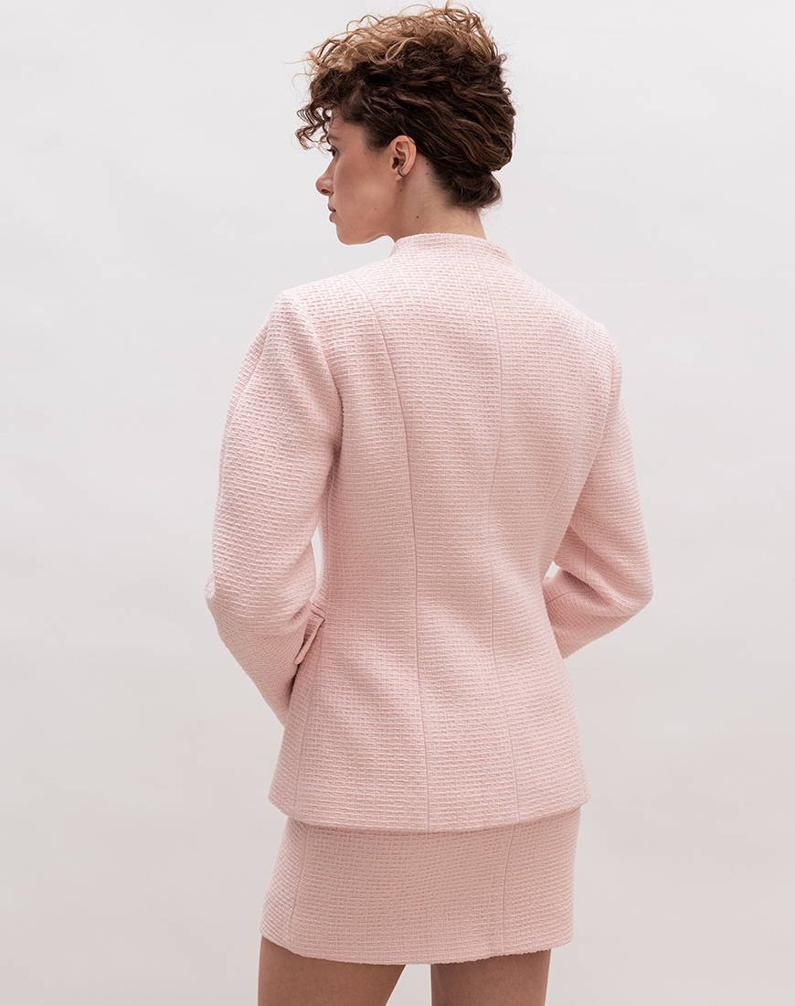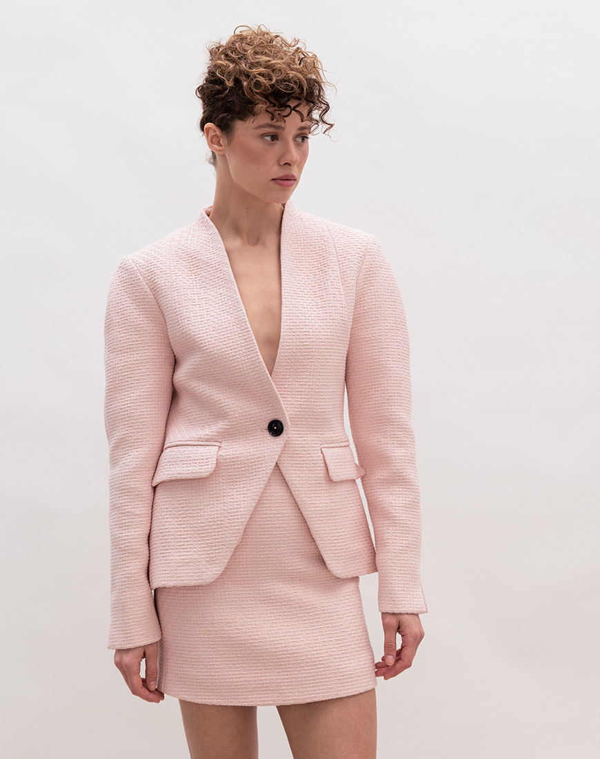 Жакет із бавовняного твіду — зразок майстерного поєднання традиційних технік та сучасних вимог до комфорту. Натуральний склад забезпечує відмінну терморегуляцію та гіпоалергенність, що робить модель ідеальним вибором для міжсезоння. Твід чудово тримає форму, зберігаючи бездоганний вигляд піджака навіть після тривалого носіння. Увага до деталей, якісна фурнітура та вивірені пропорції роблять цю модель інвестицією в капсульний гардероб. Піджак легко трансформується з офісного стилю у розслаблений вечірній образ, підкреслюючи ваш витончений смак.