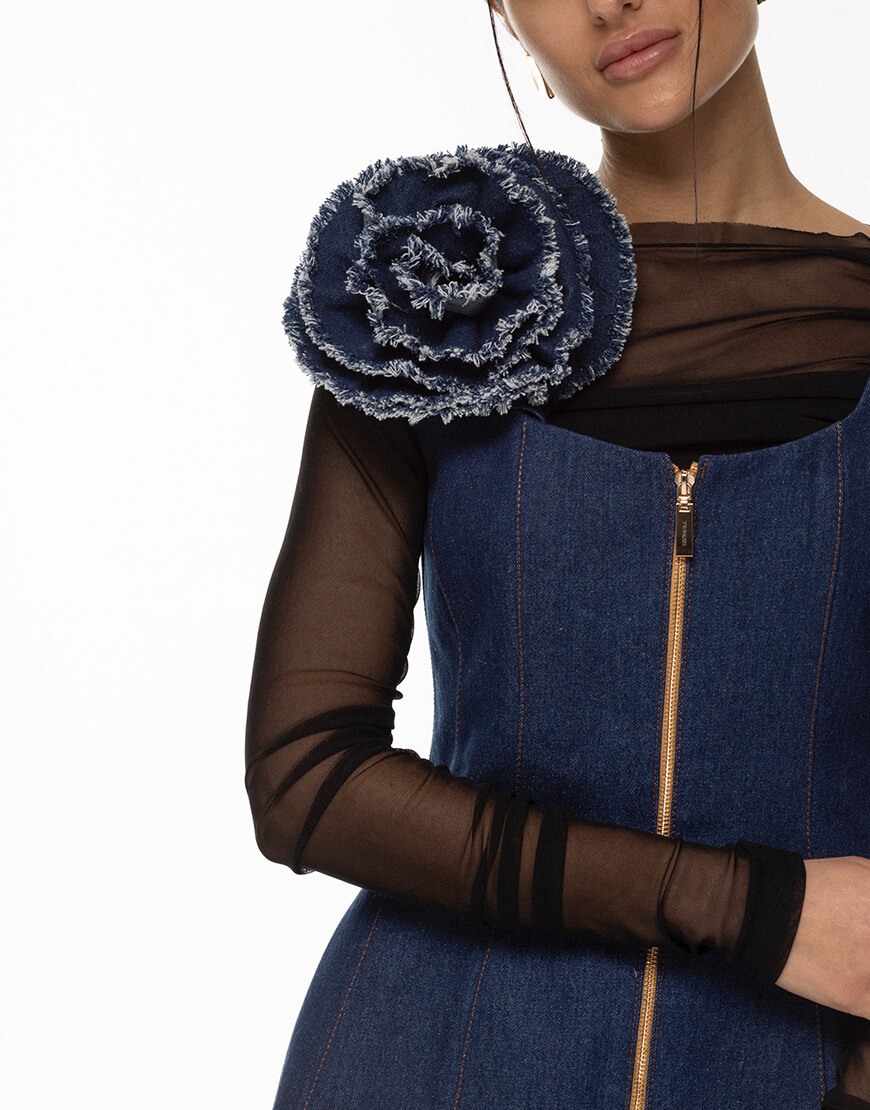 Роза обʼємна на завʼязках з деніму