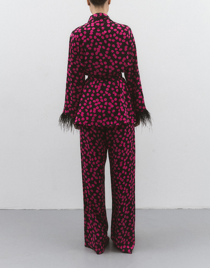 Костюм в рожеву цятку зі з’ємним пірʼям