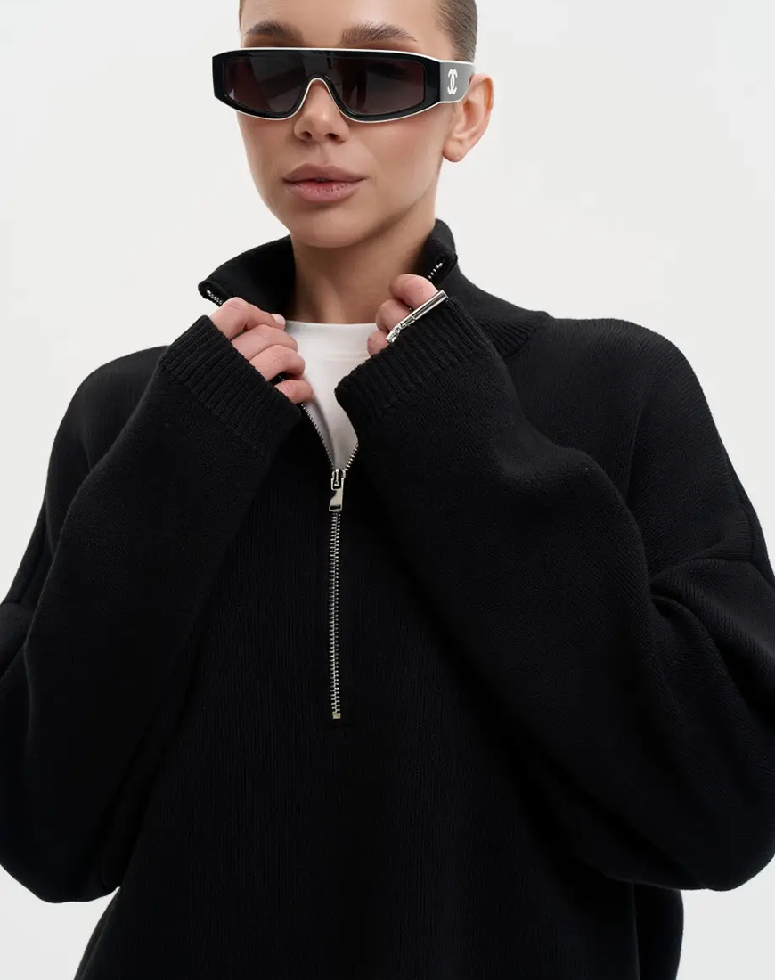 Доставка впродовж 5-7 робочих днівКомфорт, який виглядає стильно. Светр S012 має м’яку фактурну в’язку, високу горловину та блискавку, яку можна носити застібнутою або відкритою — залежно від настрою. Вільна посадка й продумана довжина роблять цю модель універсальною: для деніму, трикотажу чи спідниці.