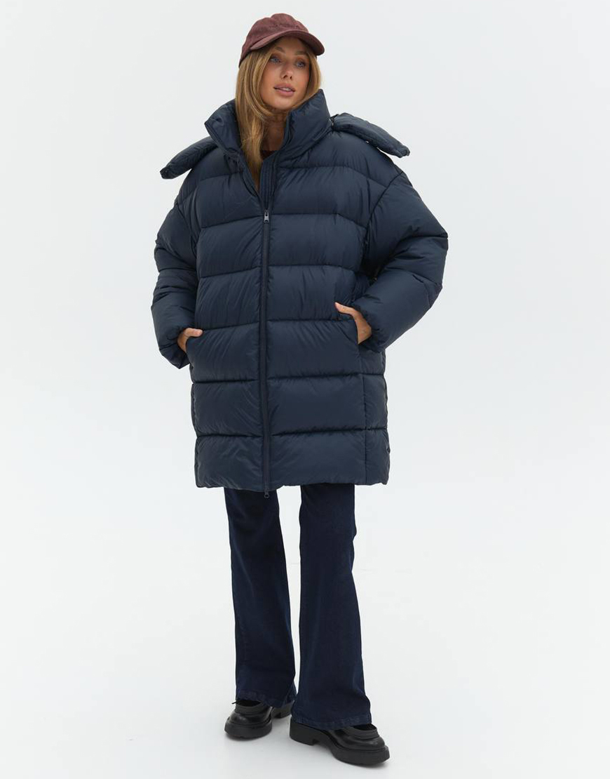 Пуховик подовжений синій