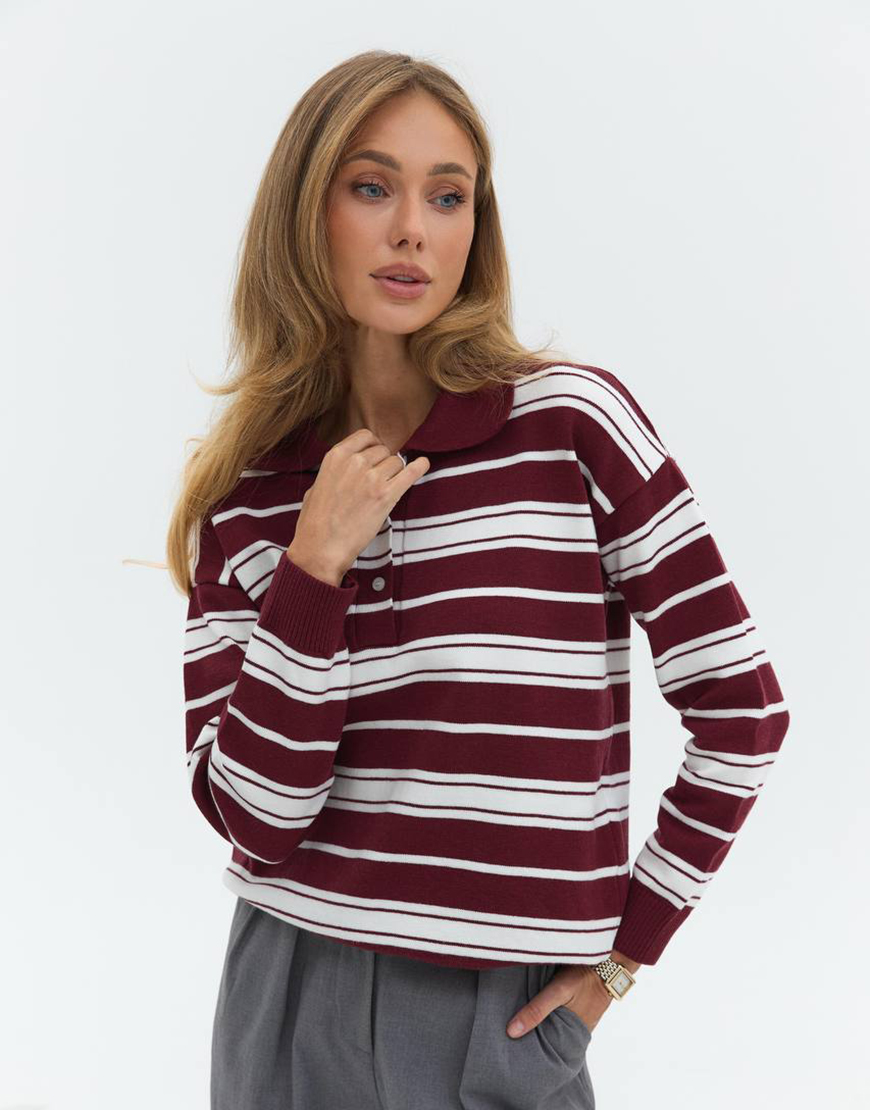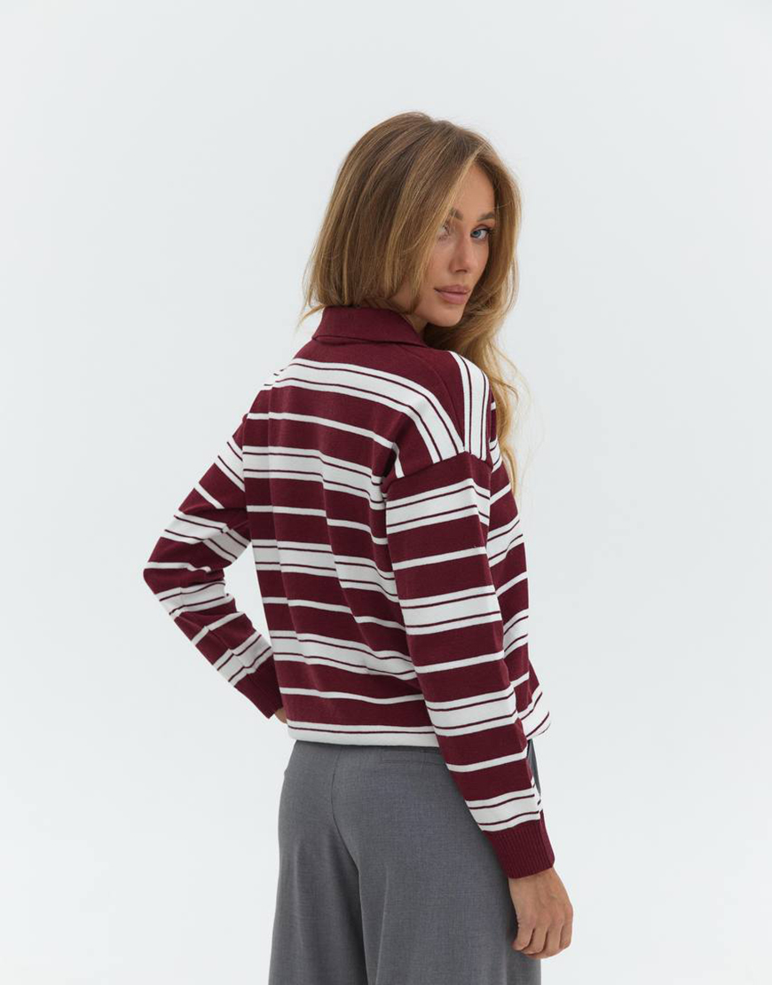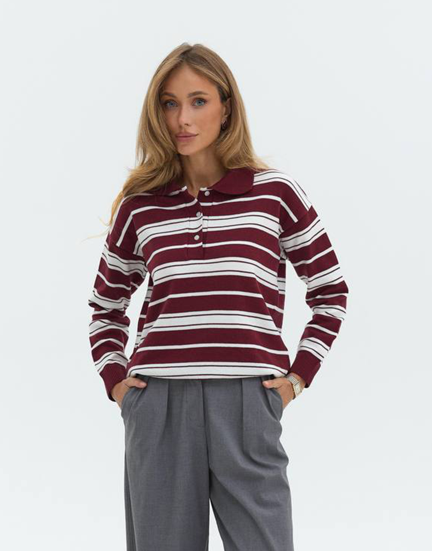 Джемпер поло в смужку бургунді
